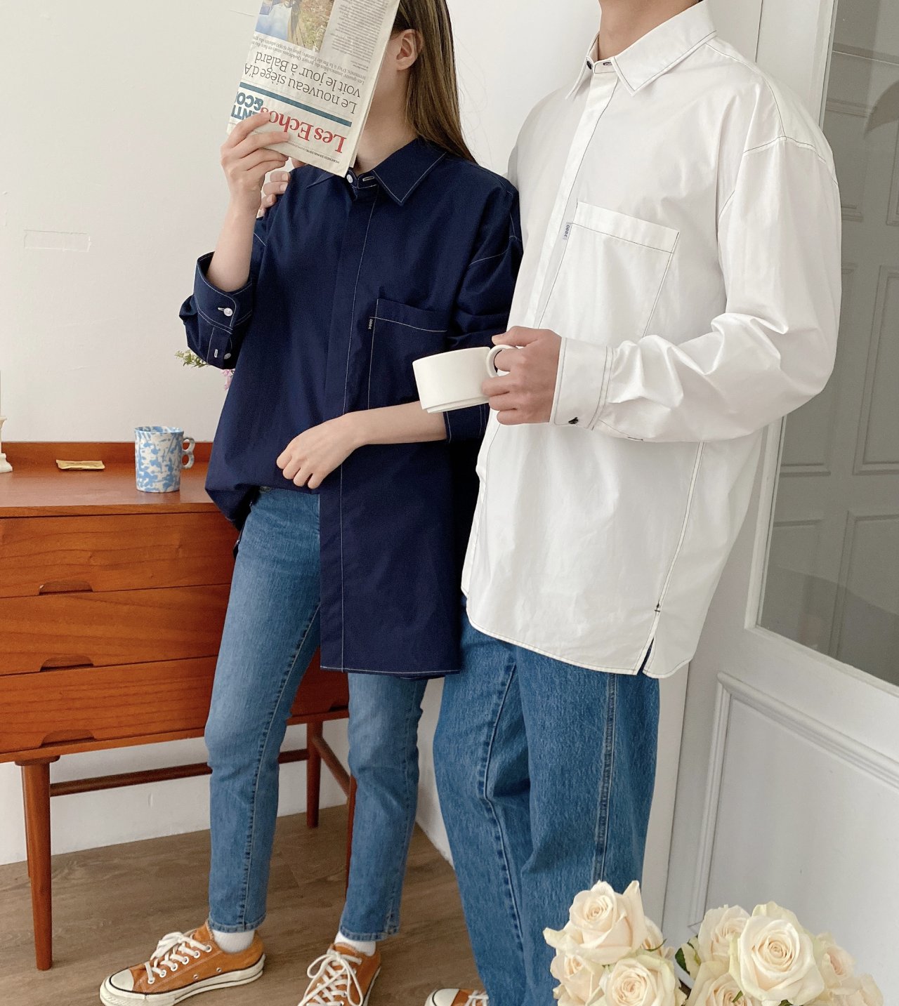 커플 DS 방탄 스티치 긴팔 셔츠 남방