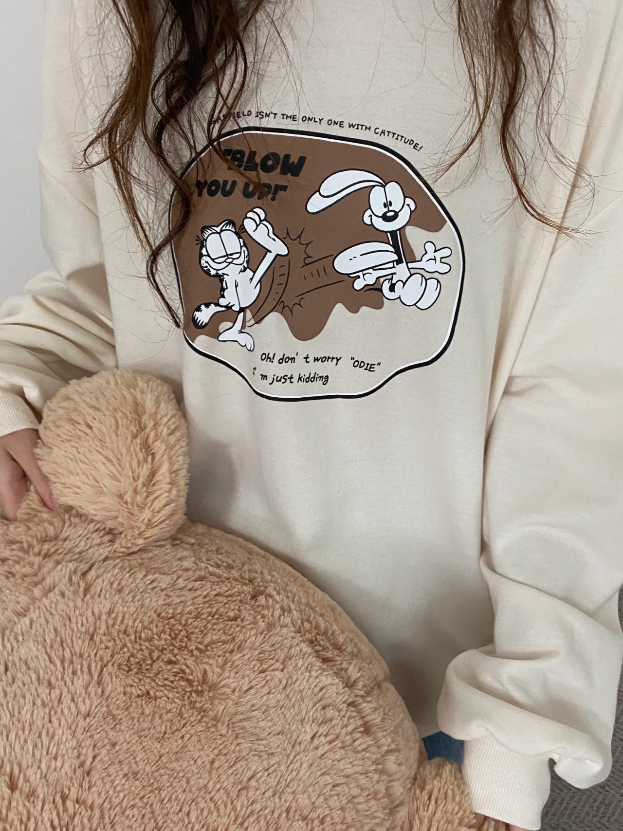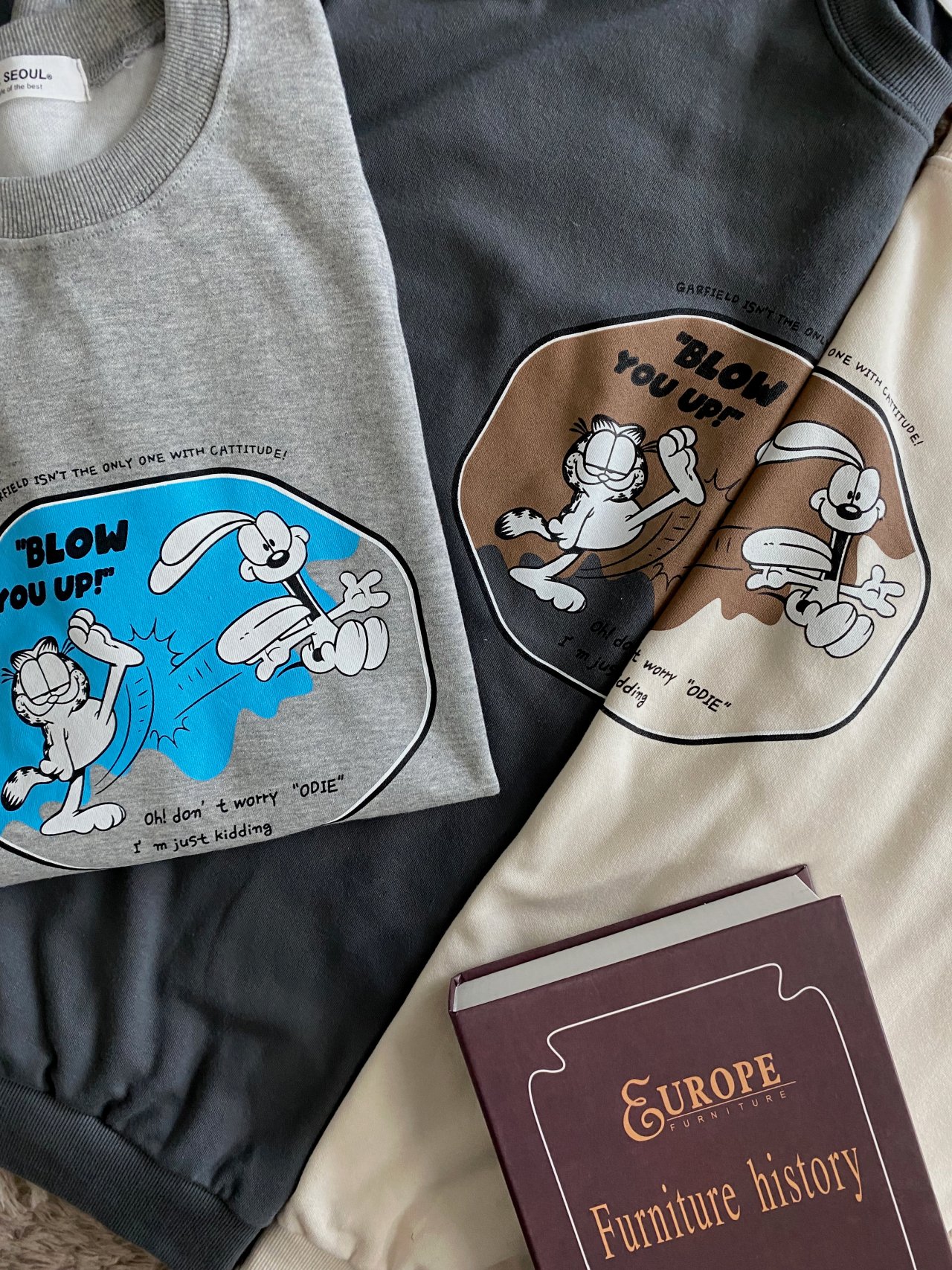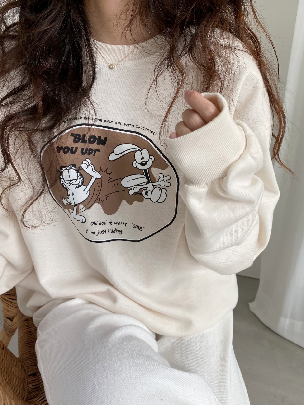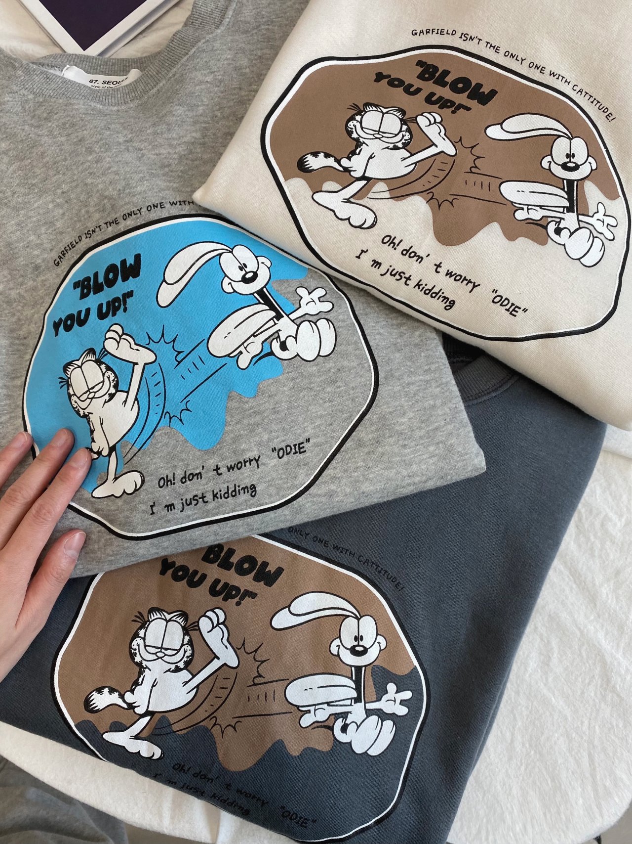 커플 SU 가필드 기모 맨투맨 티셔츠