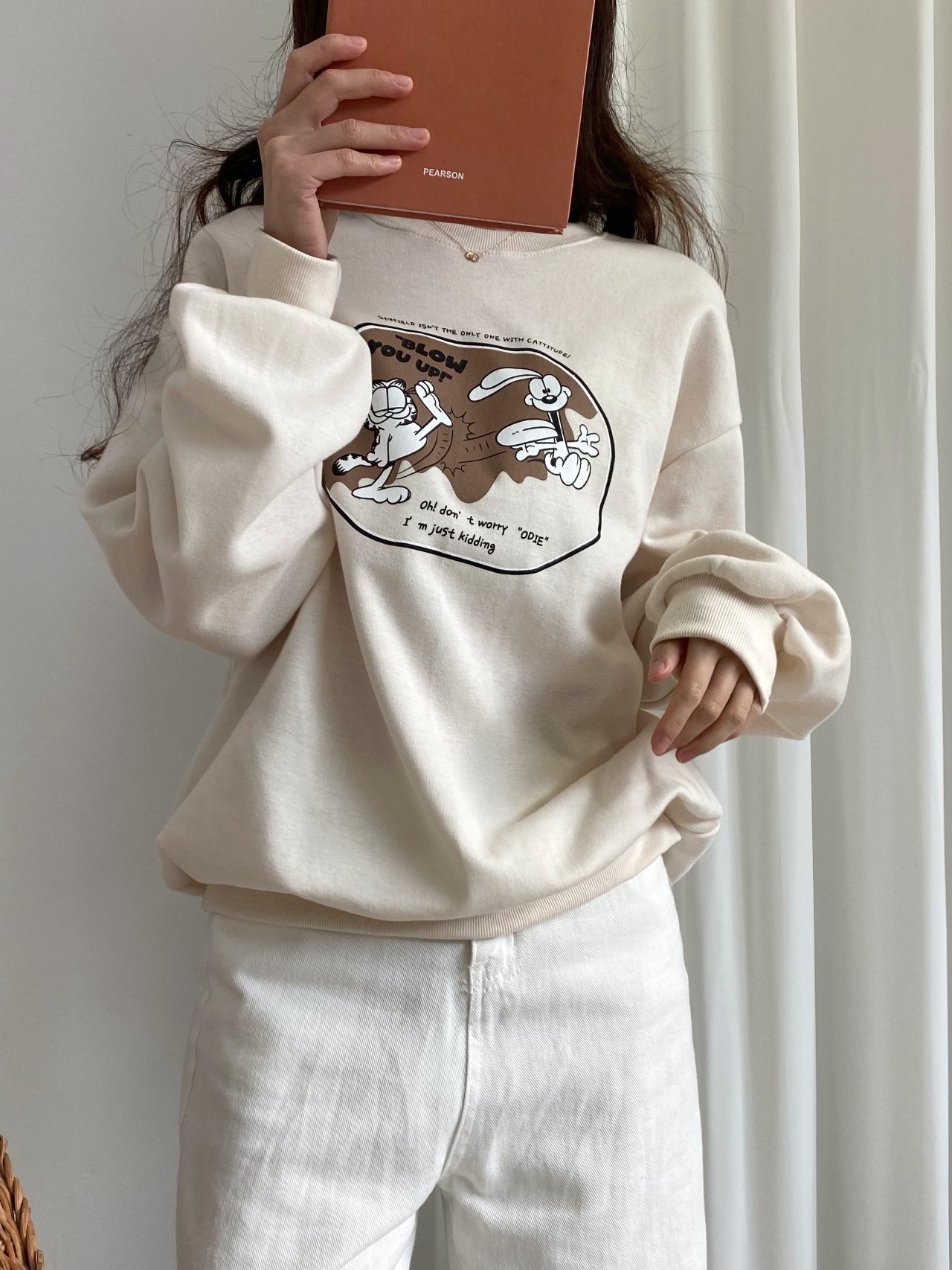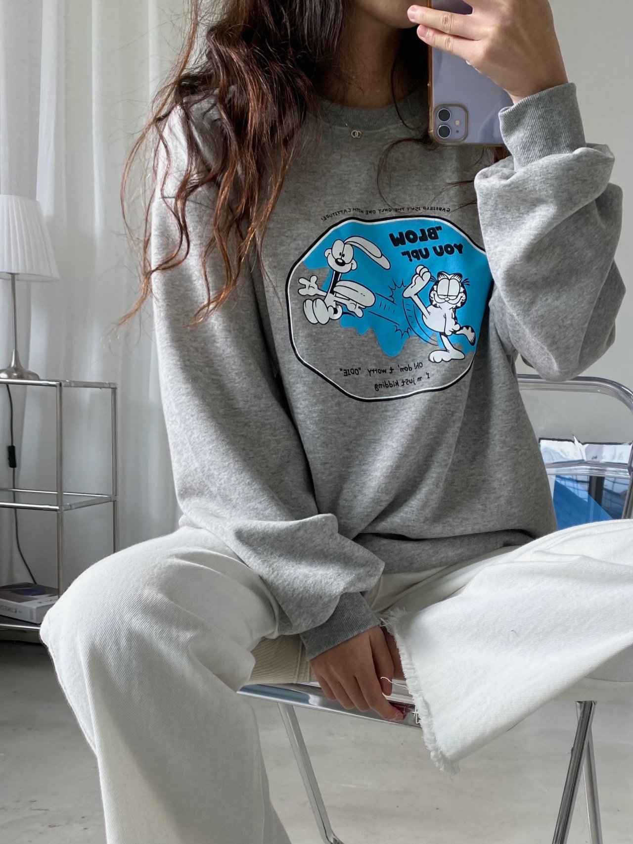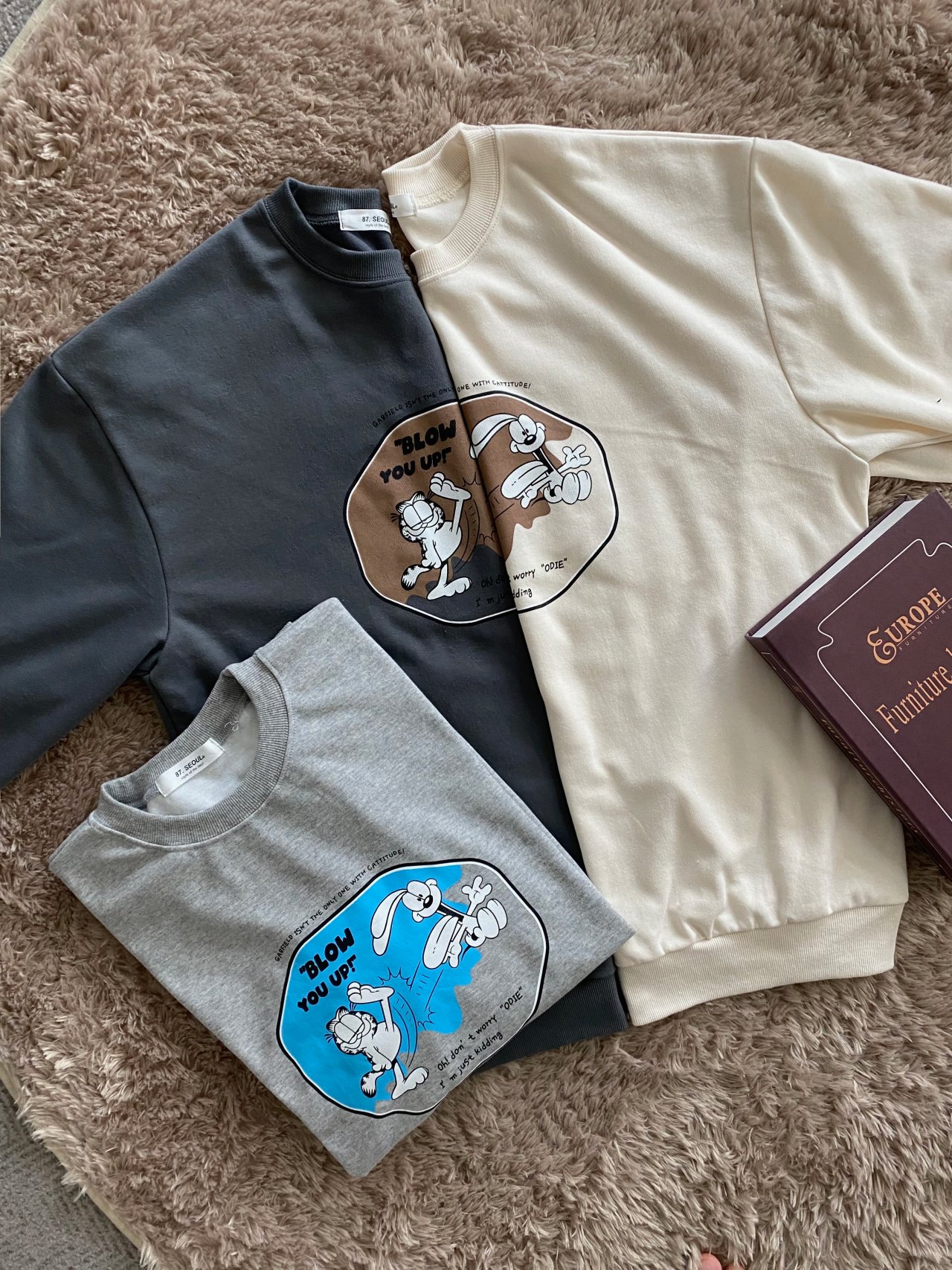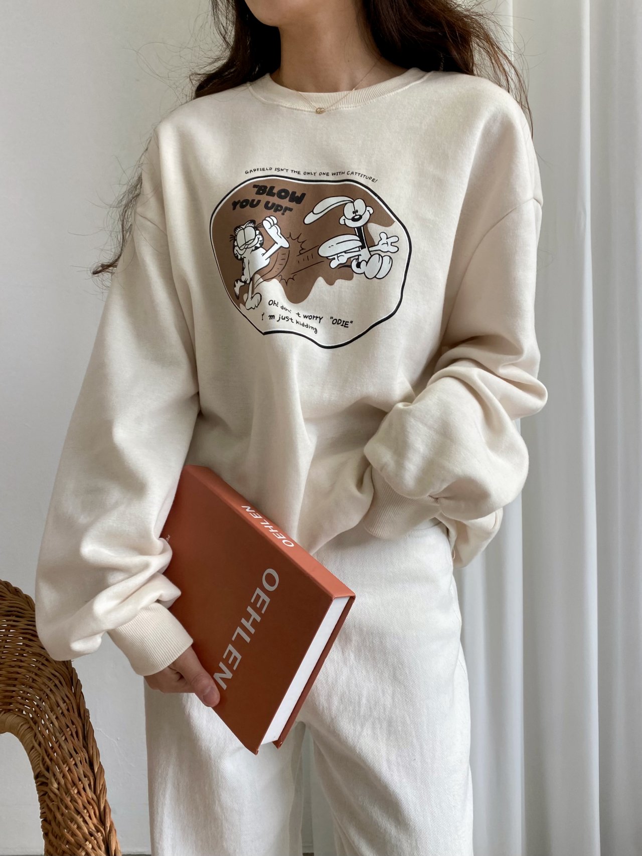 커플 SU 가필드 기모 맨투맨 티셔츠
