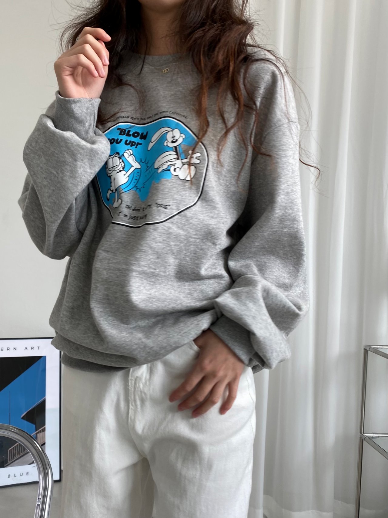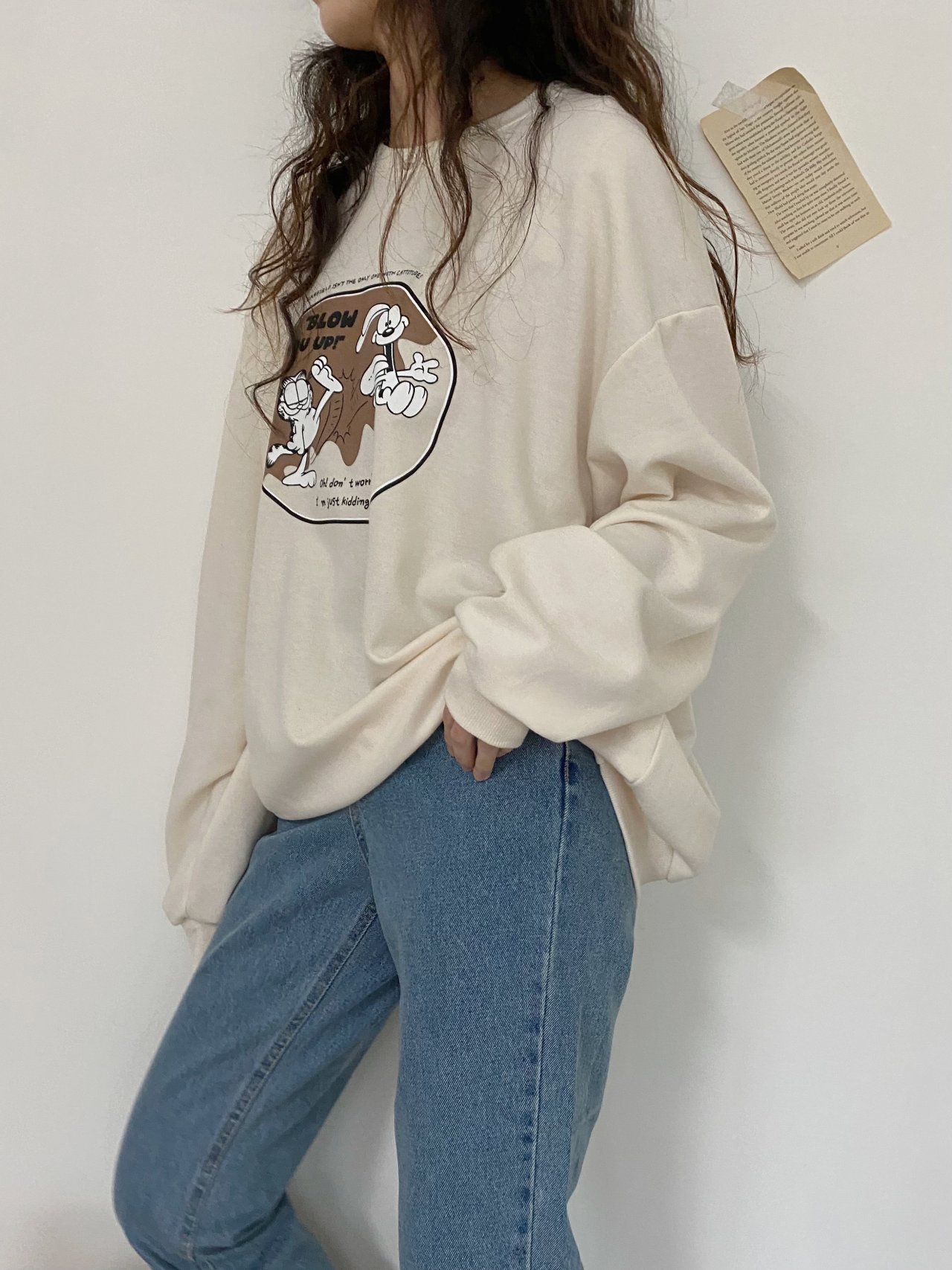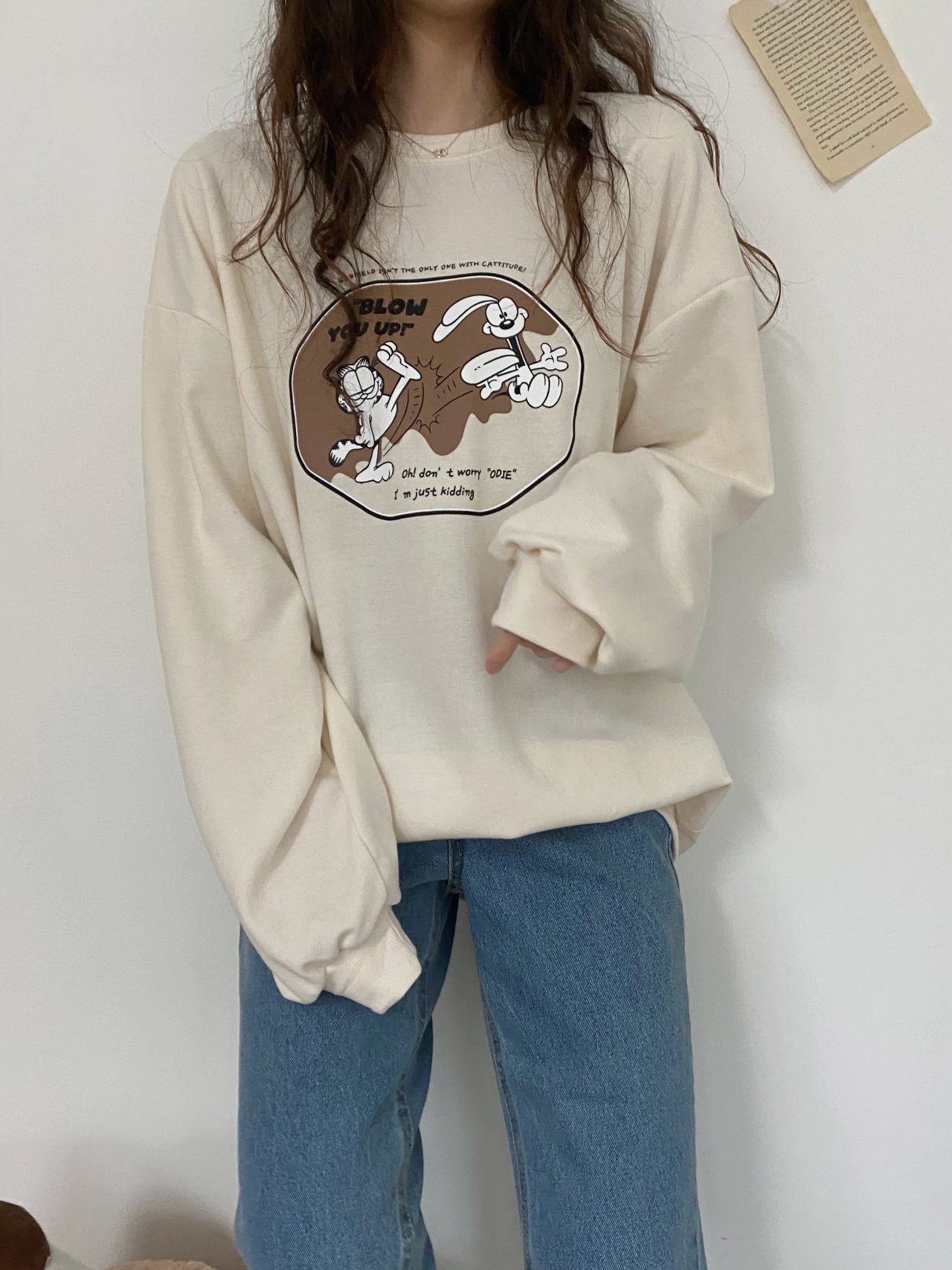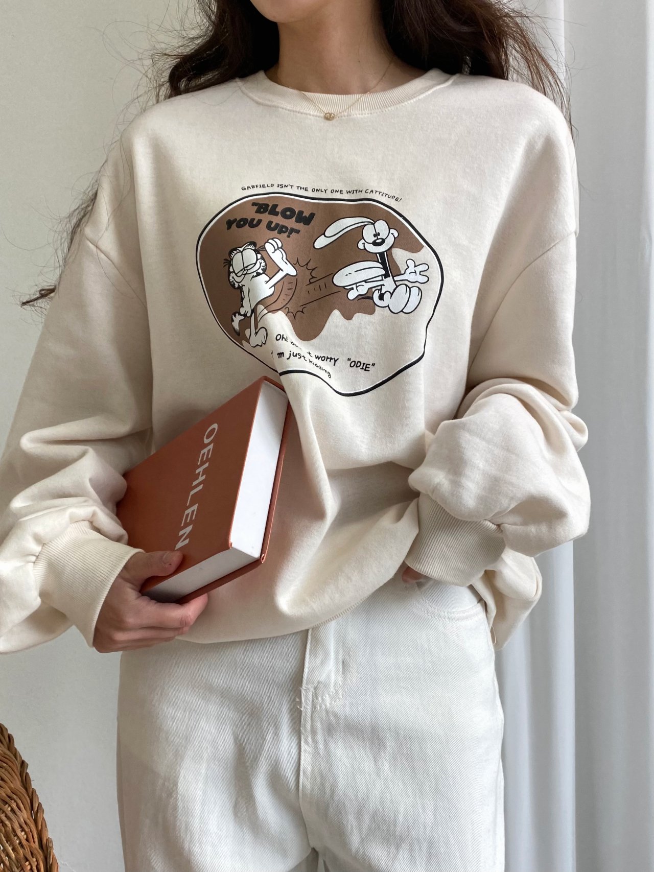 커플 SU 가필드 기모 맨투맨 티셔츠