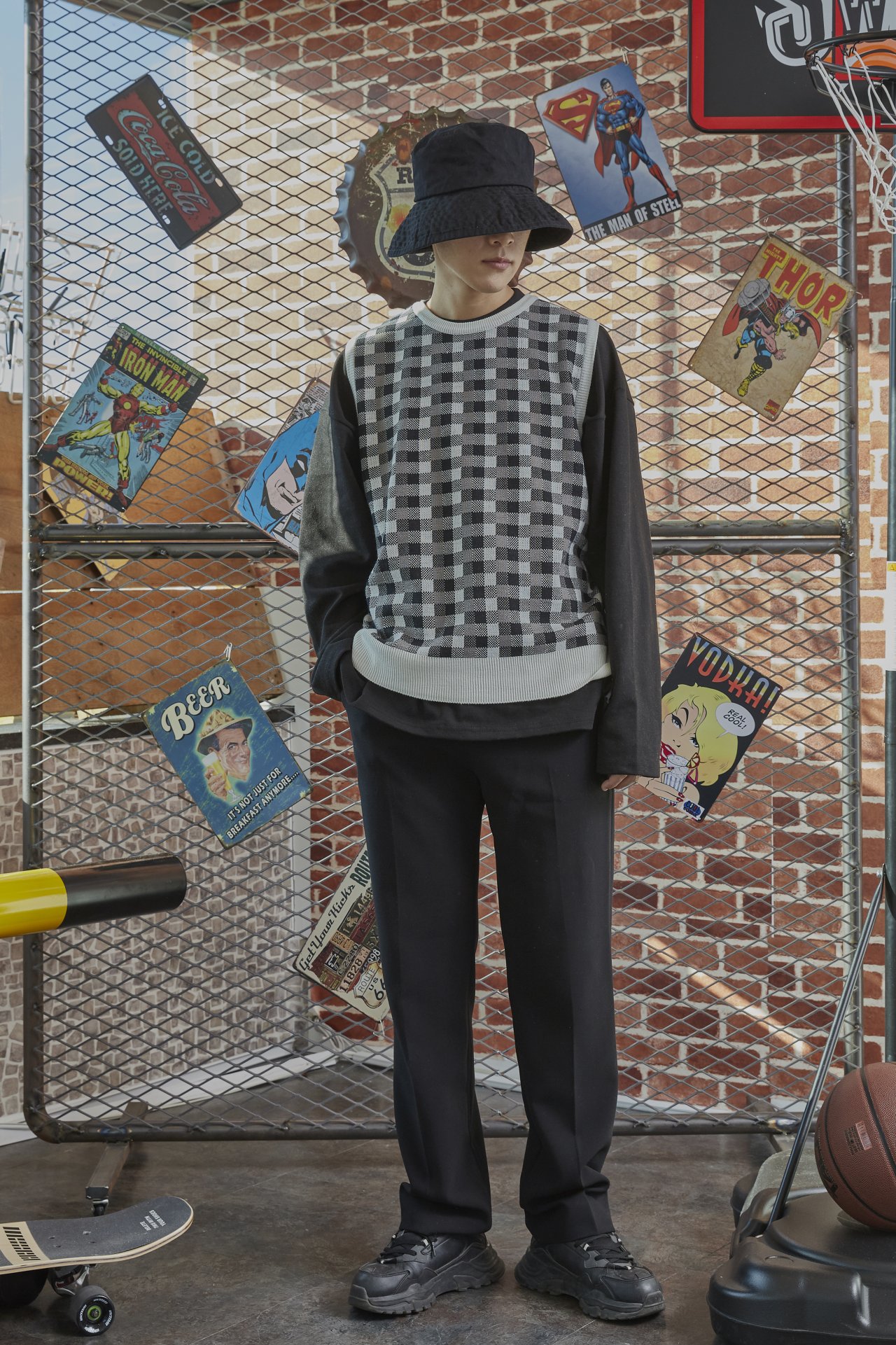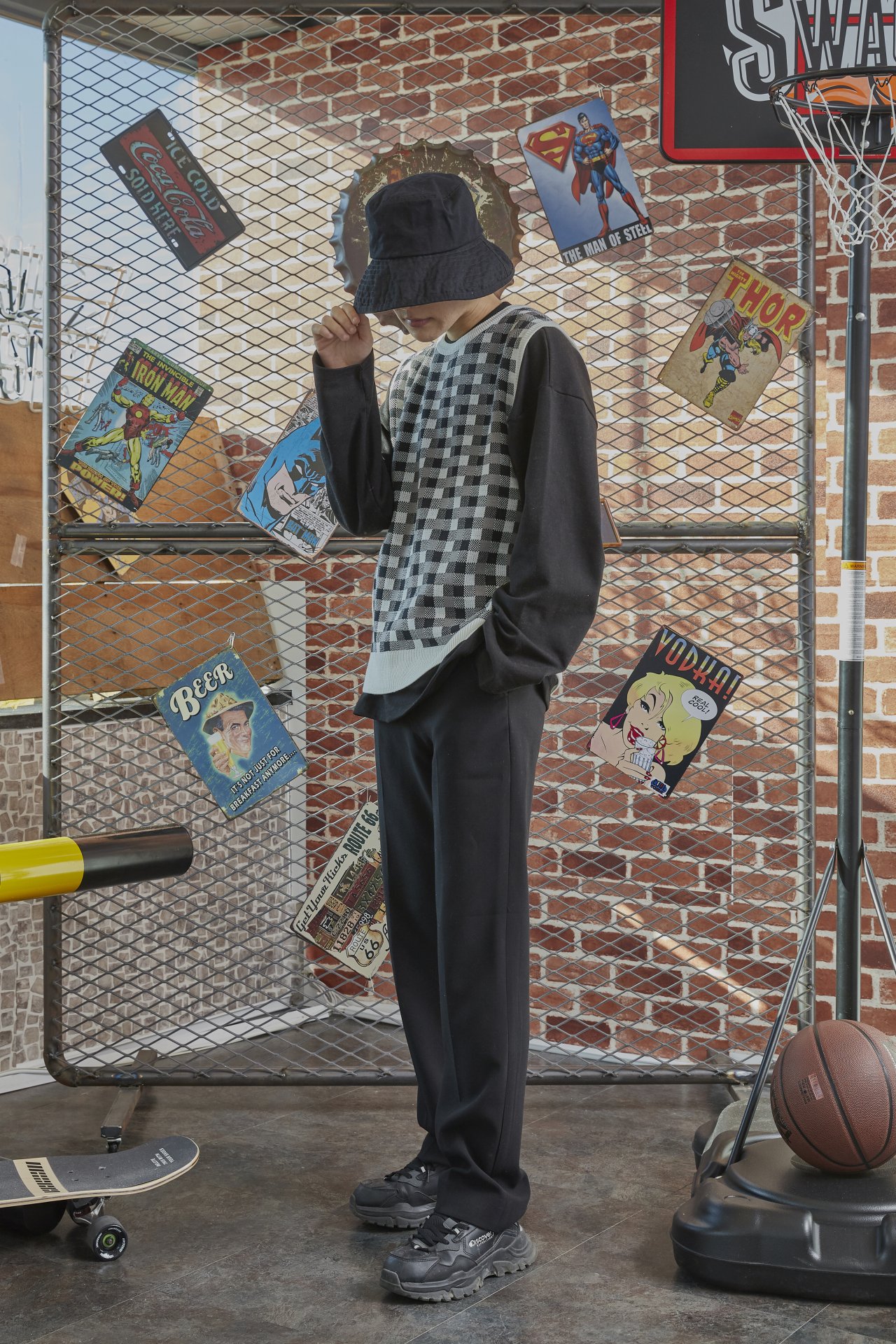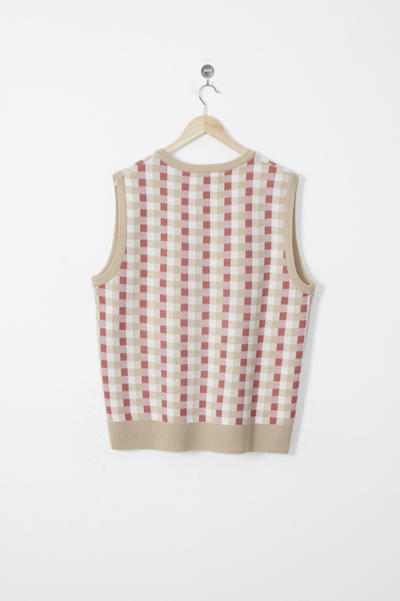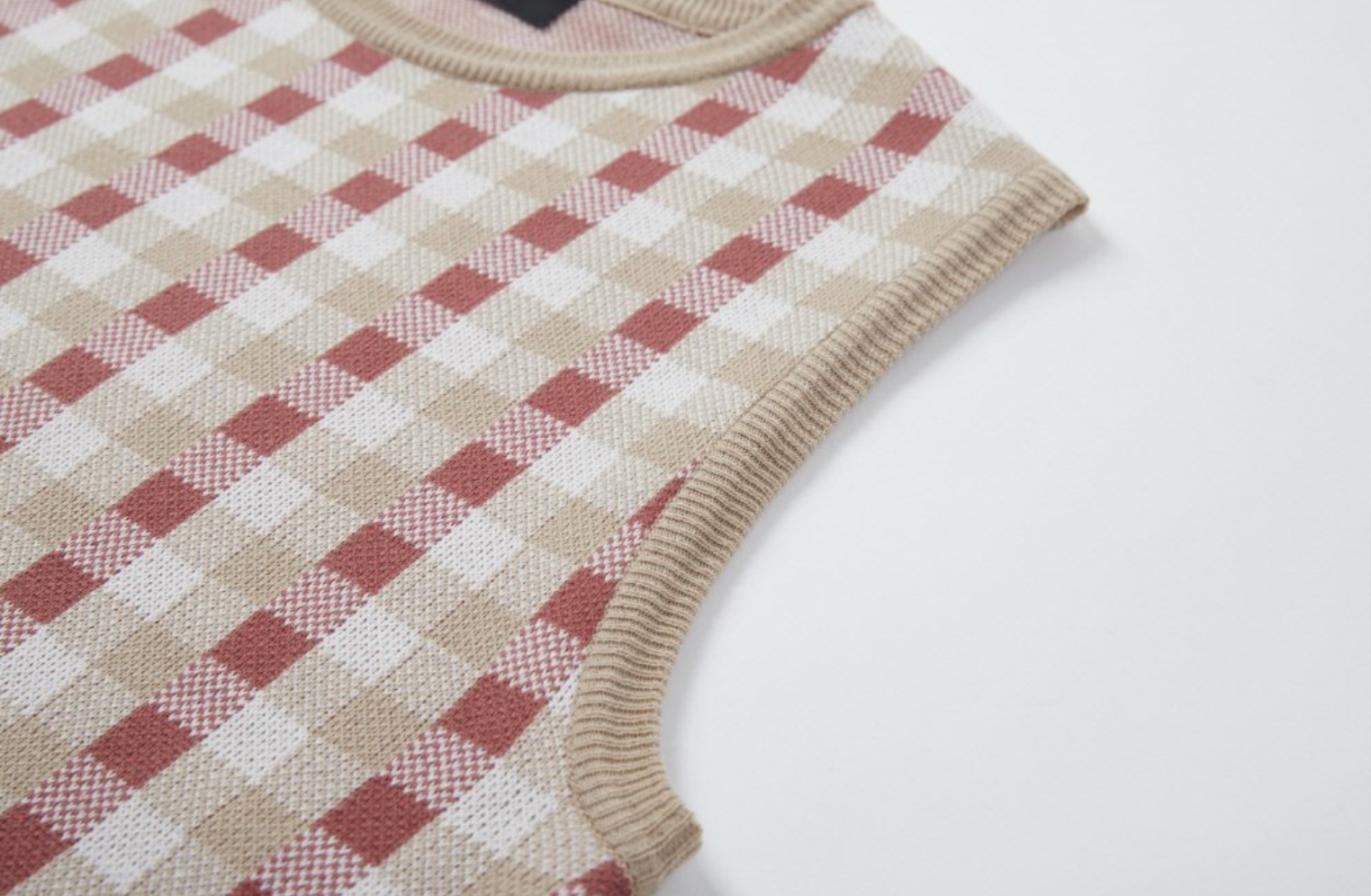 [DS] 커플 바둑판 체크 패턴 라운드 루즈핏 니트 조끼 베스트