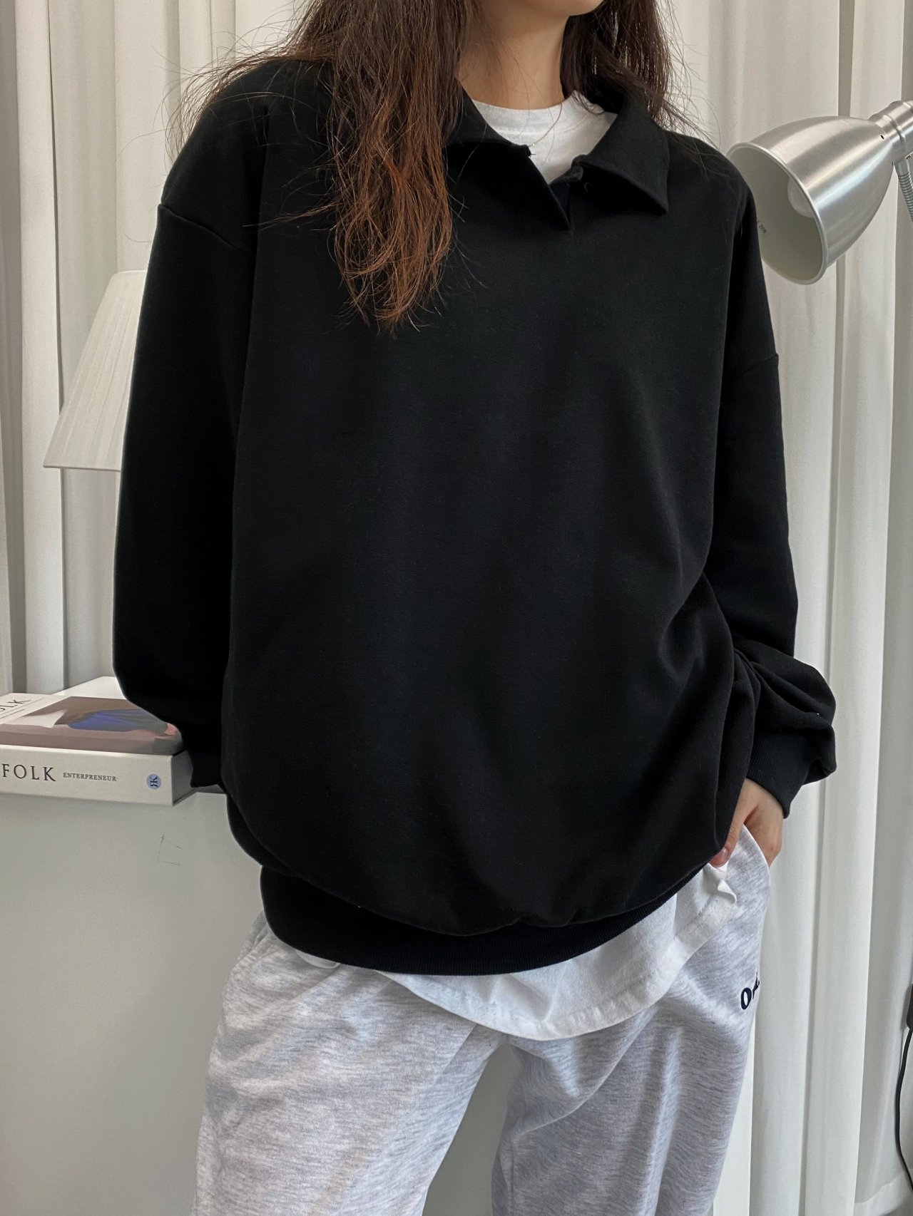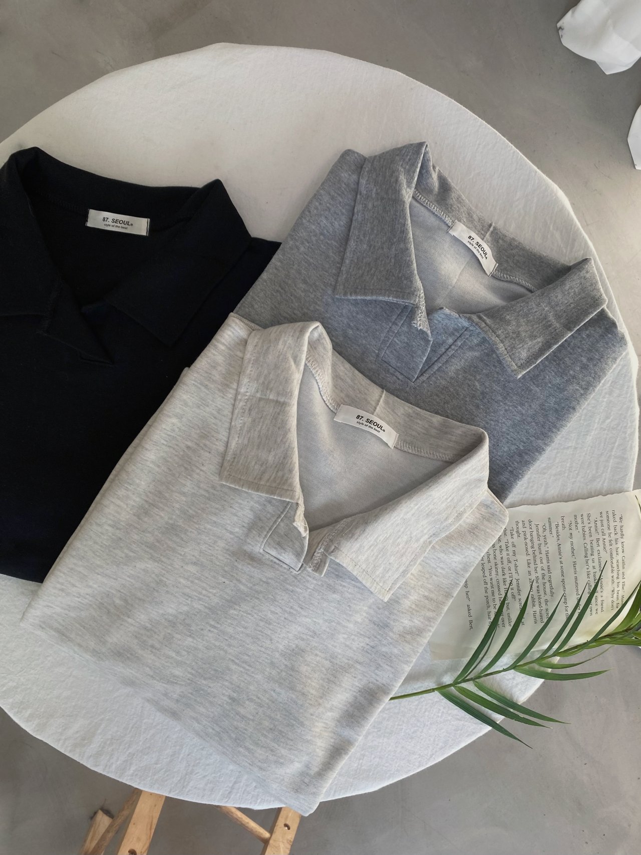 SU 오픈 카라 맨투맨 티셔츠 : 브이핏