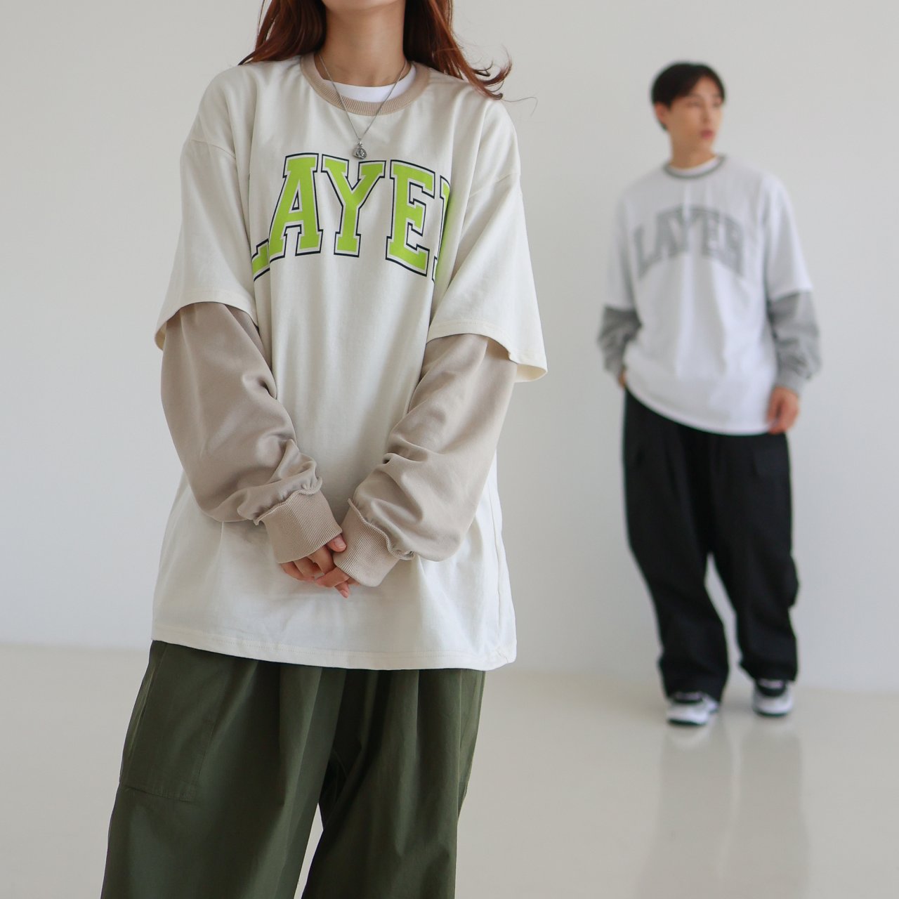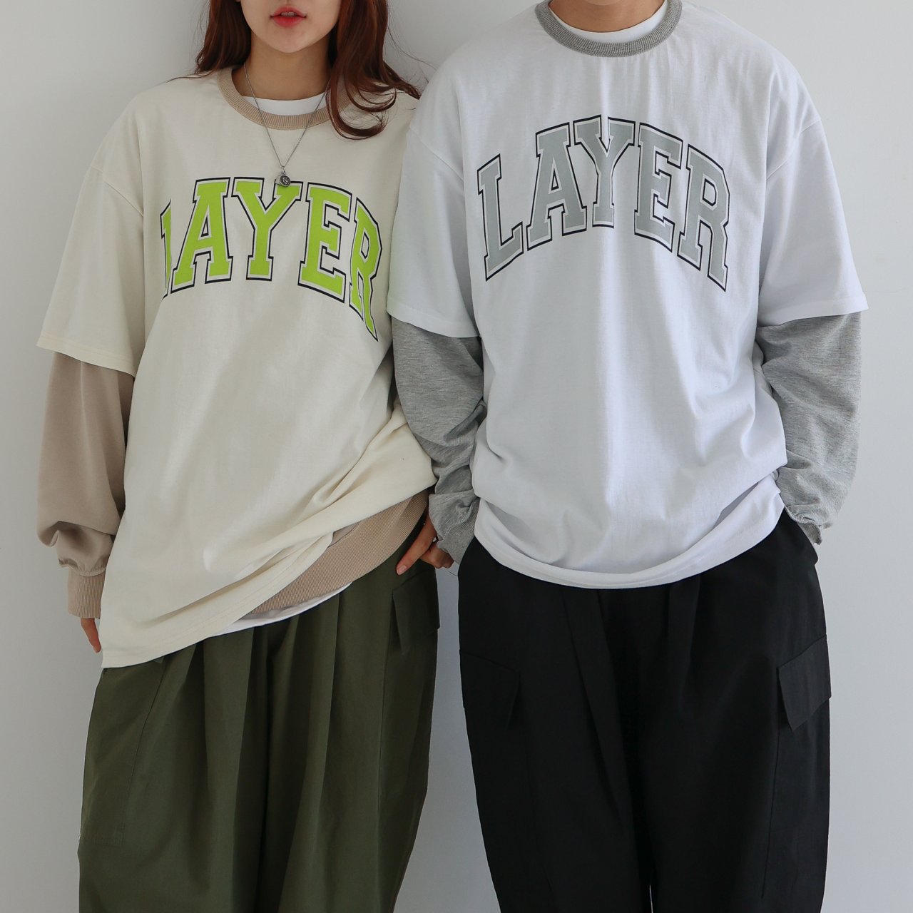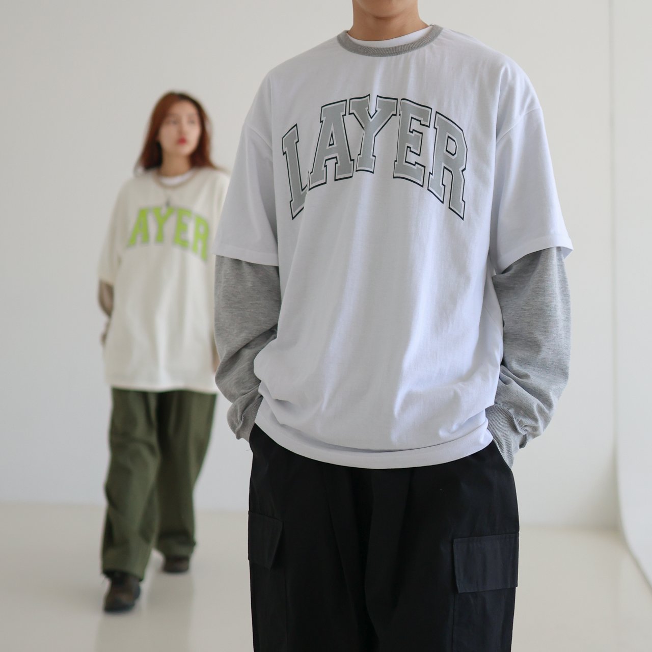 DS 양면 레이어드 맨투맨 티셔츠 : 브이핏