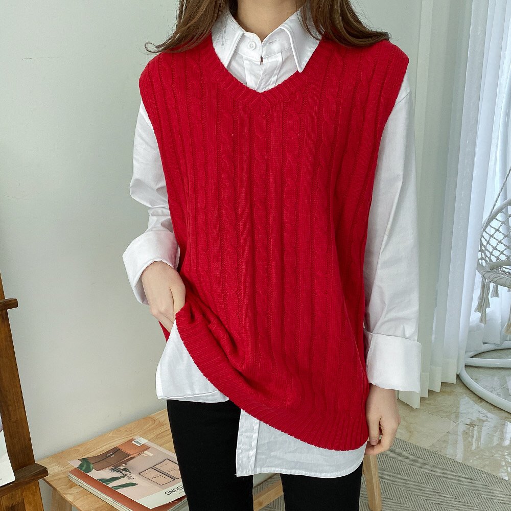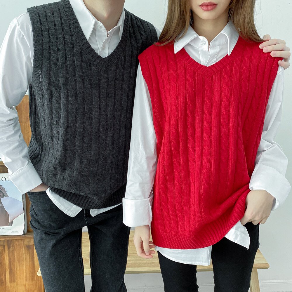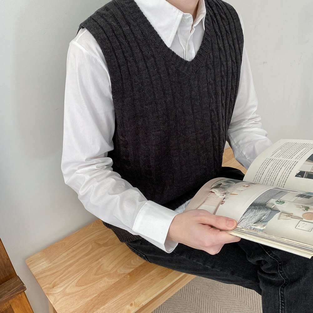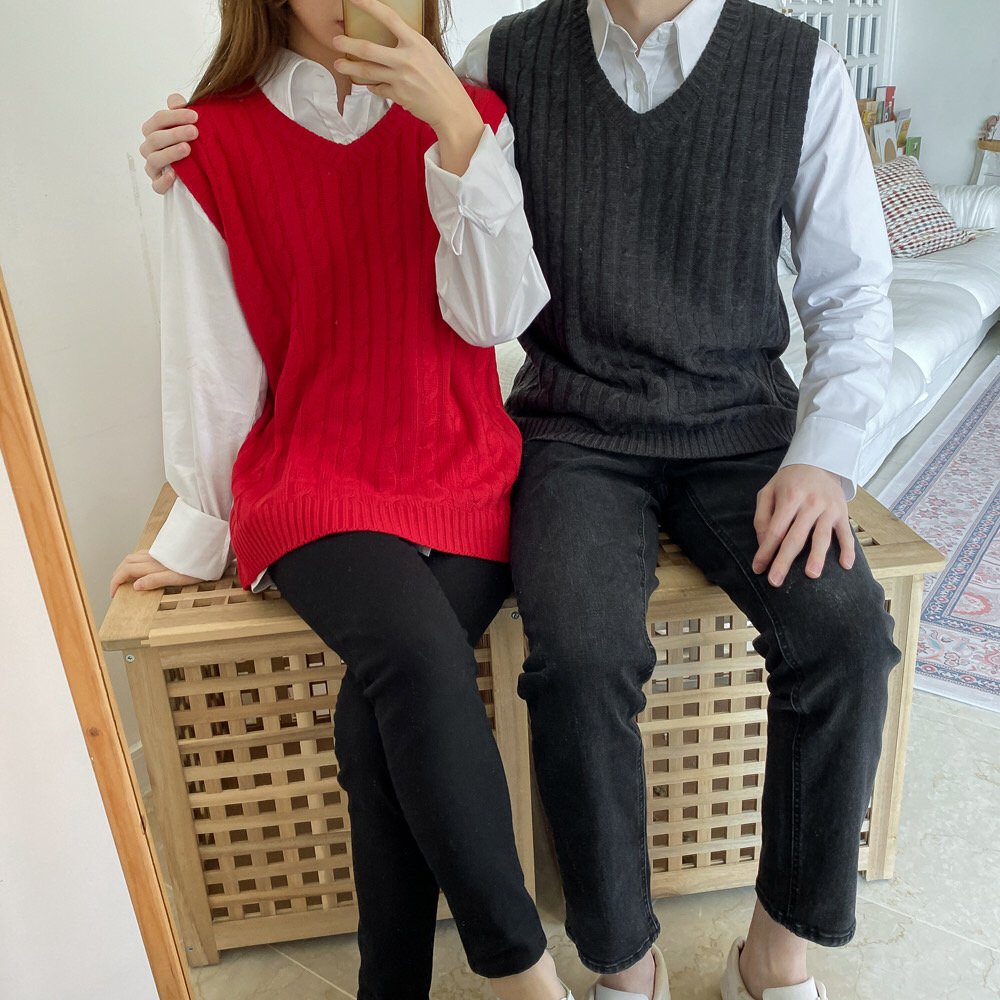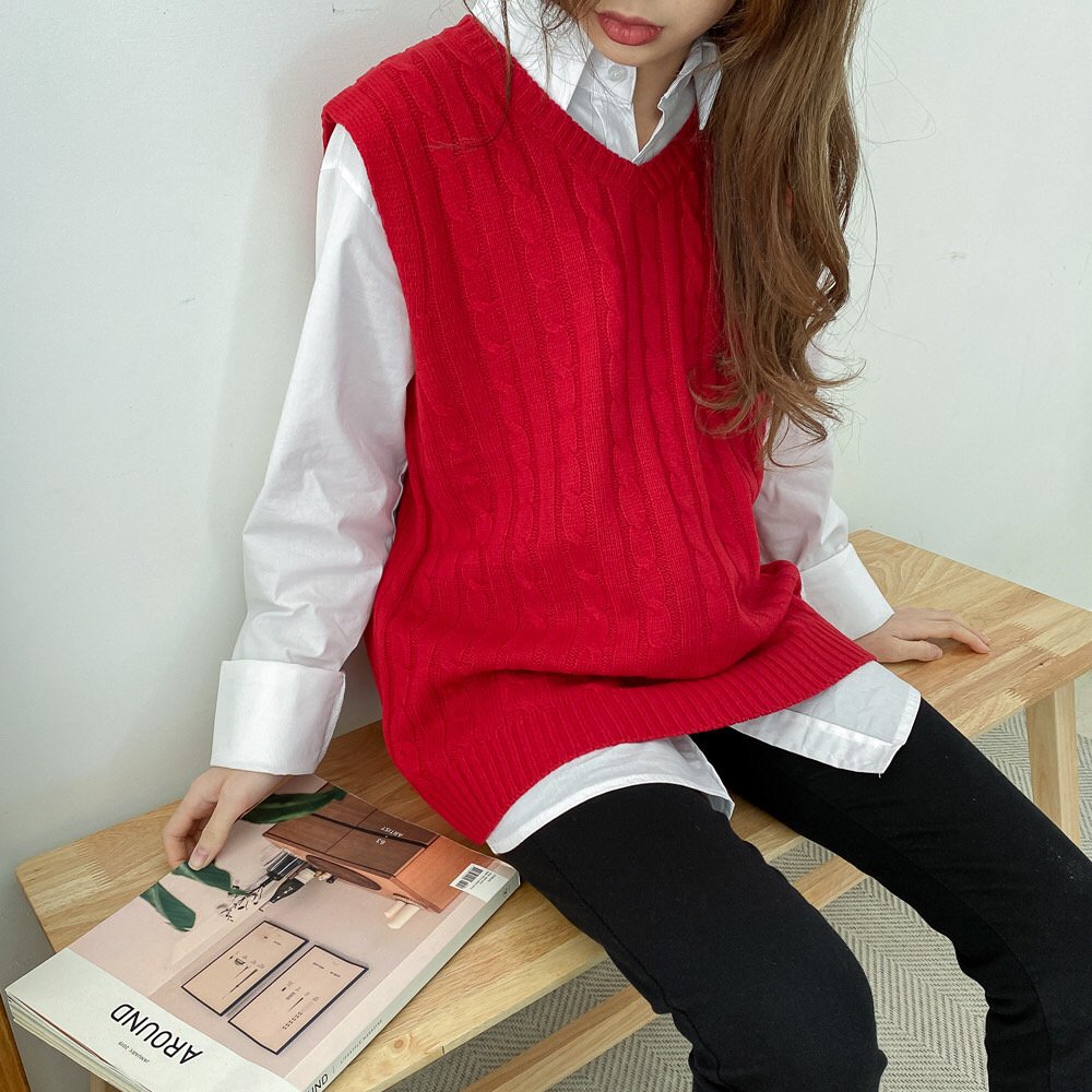 DS 꽈베기 브이넥 니트 조끼 베스트 : 브이핏