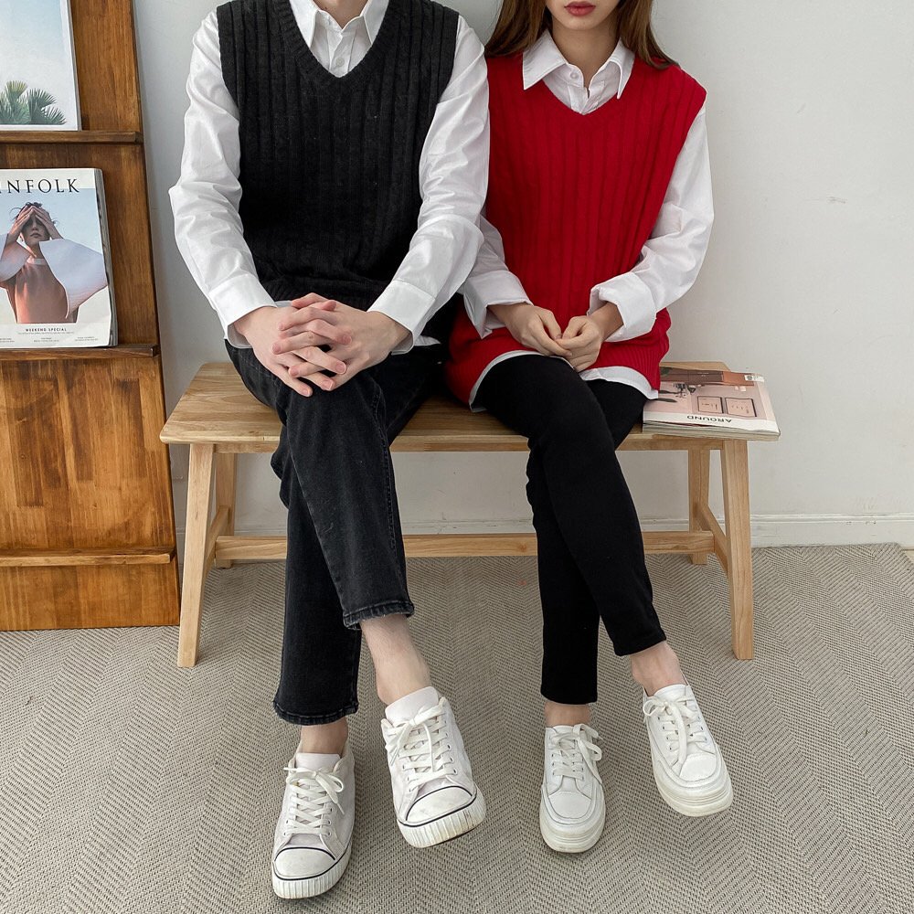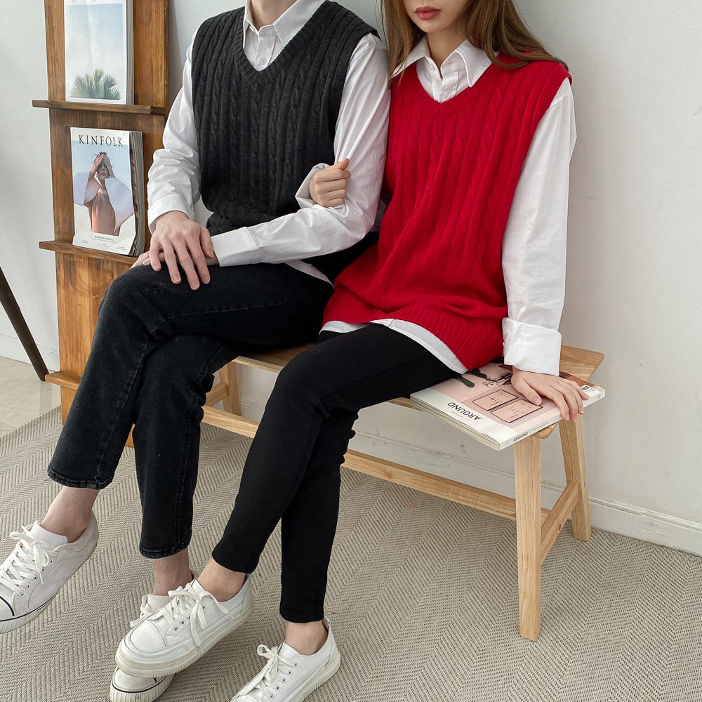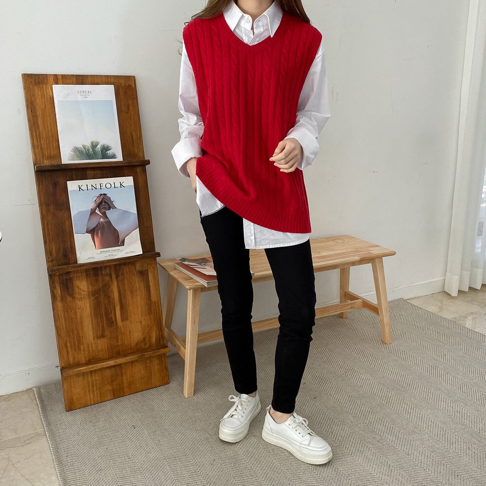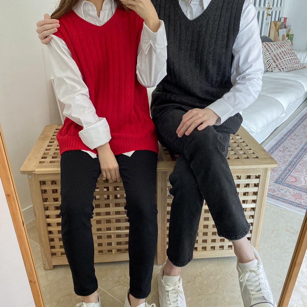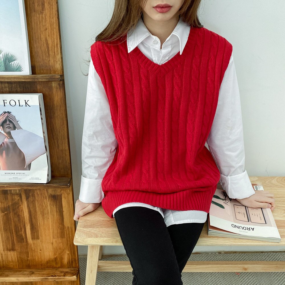 DS 꽈베기 브이넥 니트 조끼 베스트 : 브이핏
