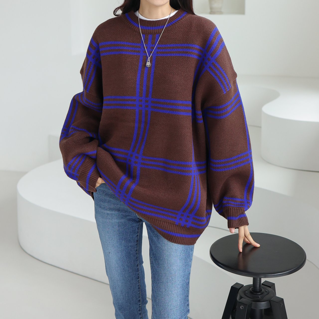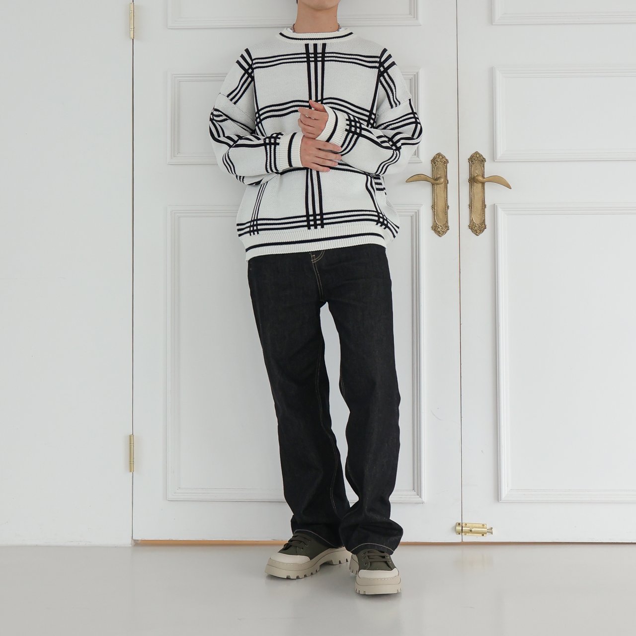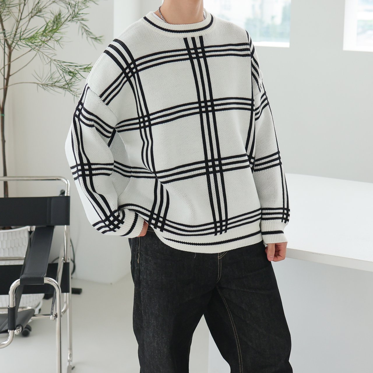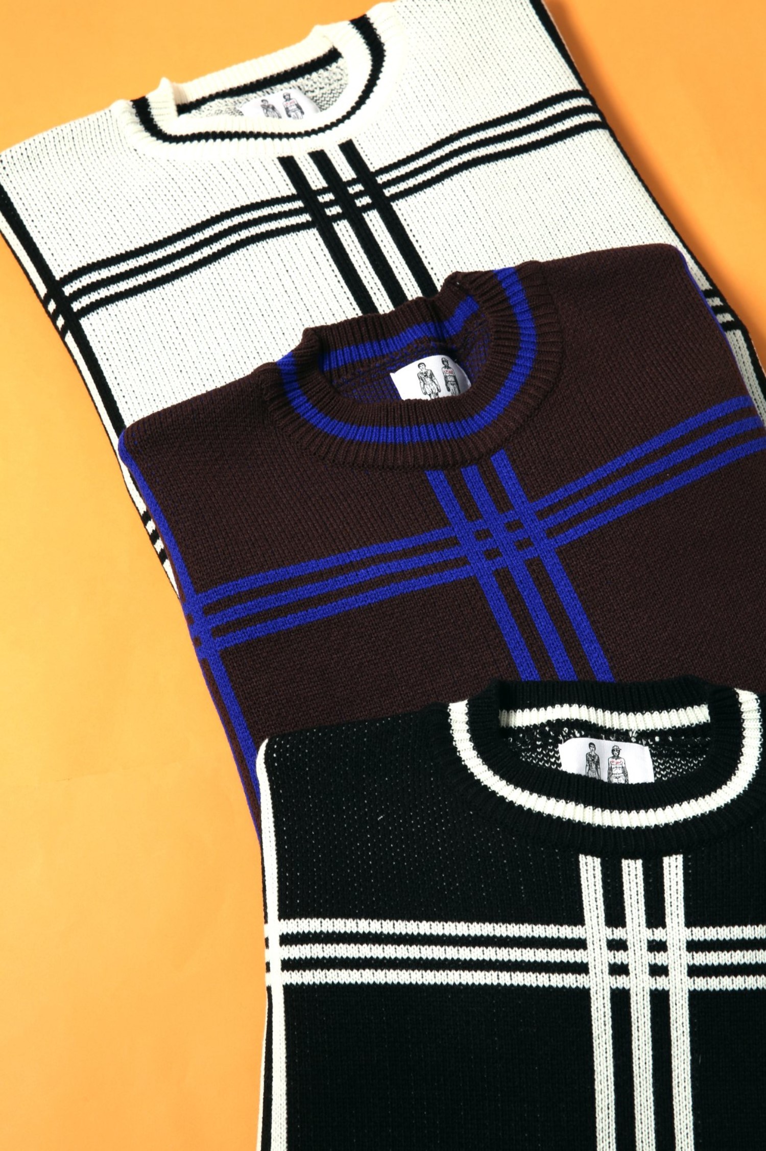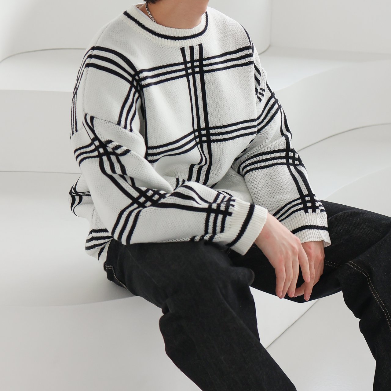 디투 체크 체크 라운드 니트 스웨터 : 브이핏
