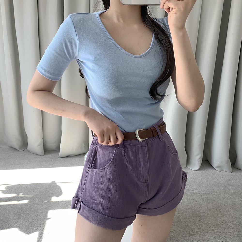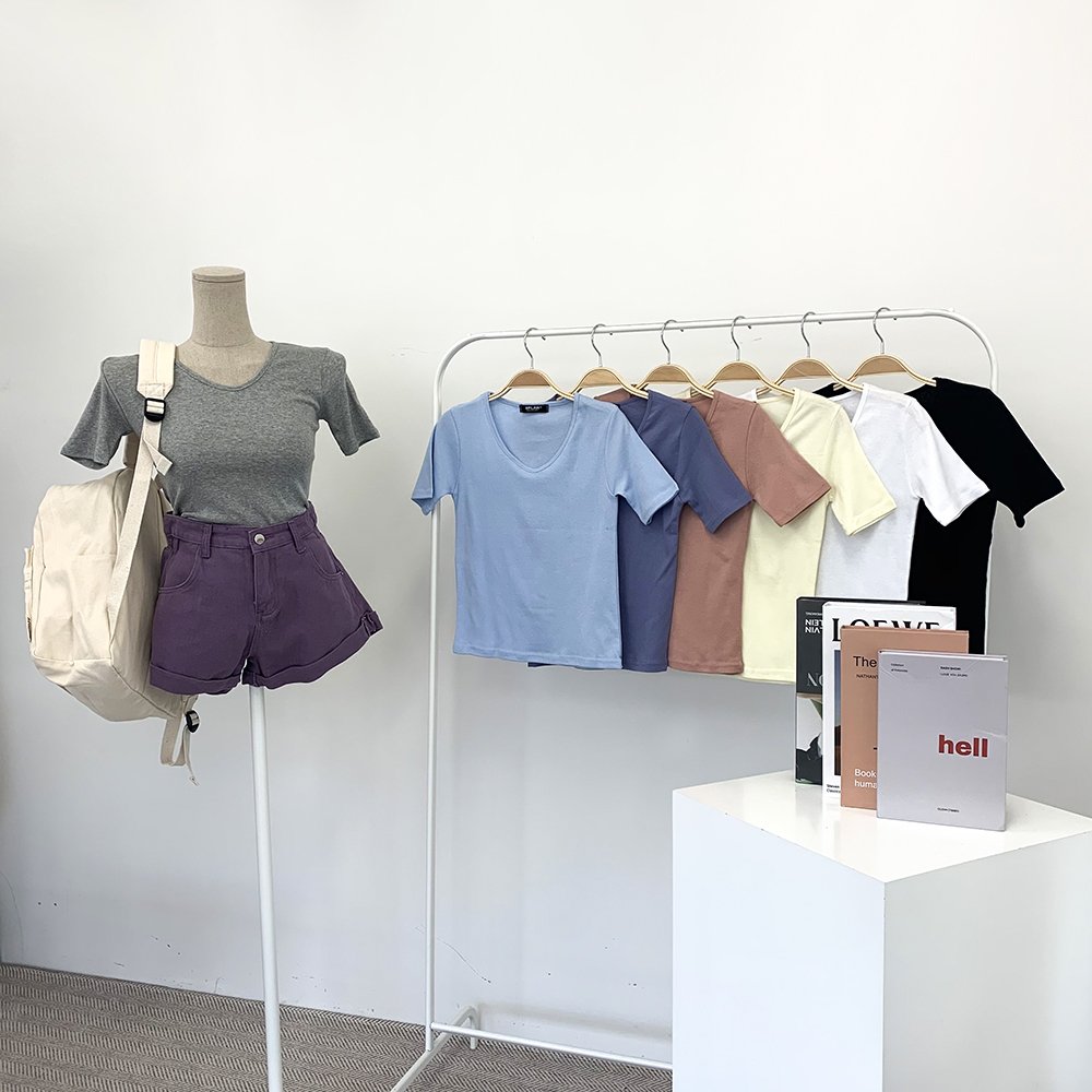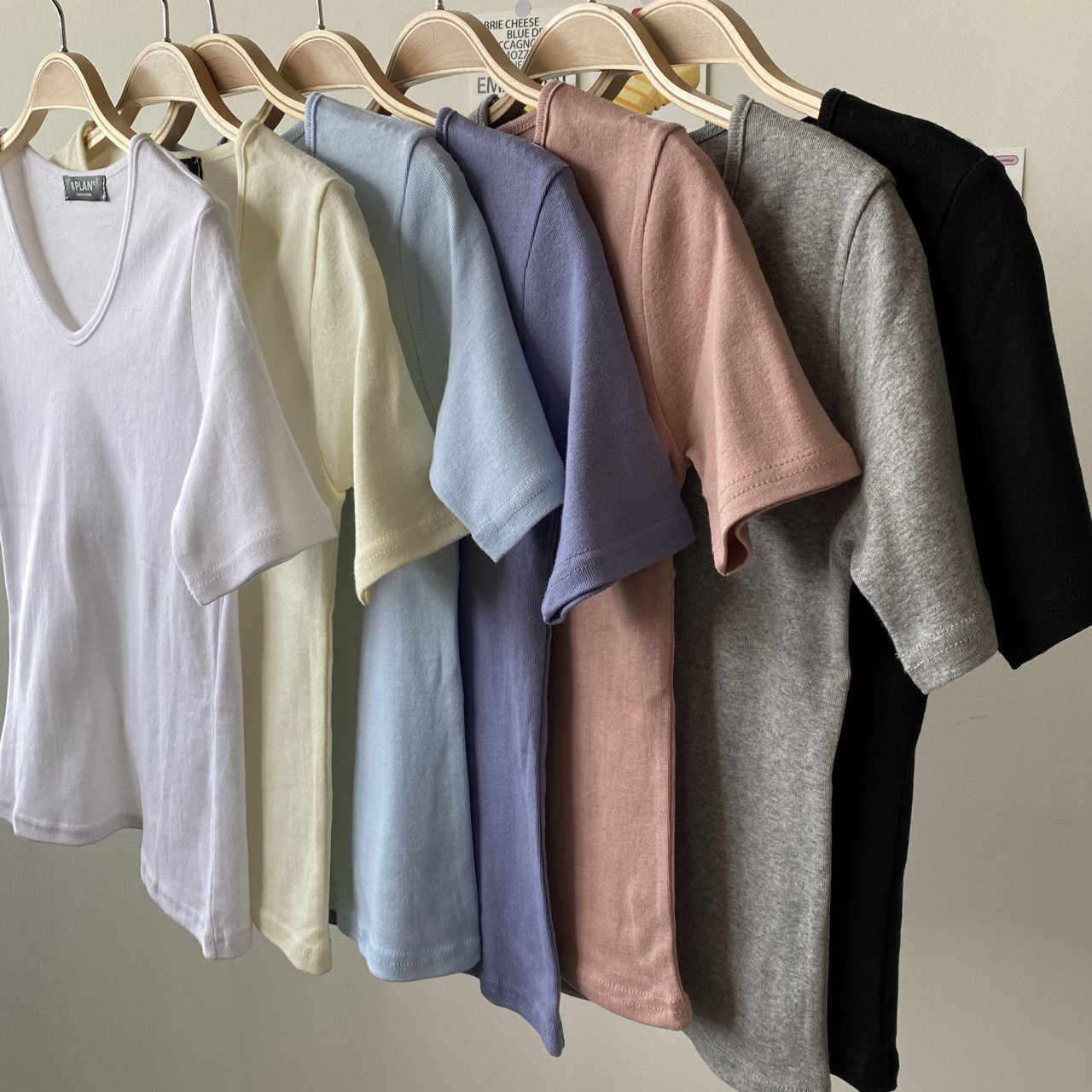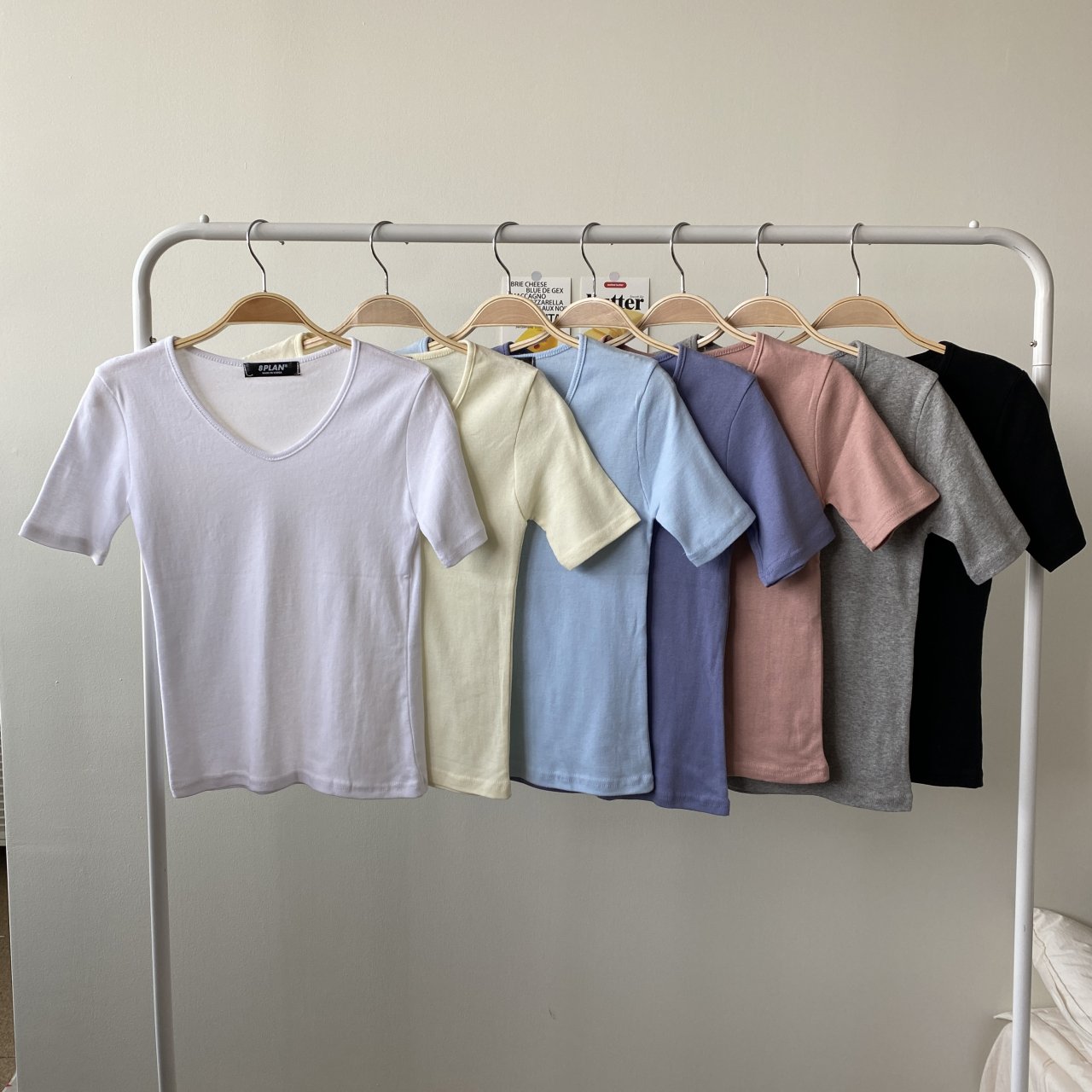 8P 탄탄 브이넥 반팔 티셔츠 : 브이핏