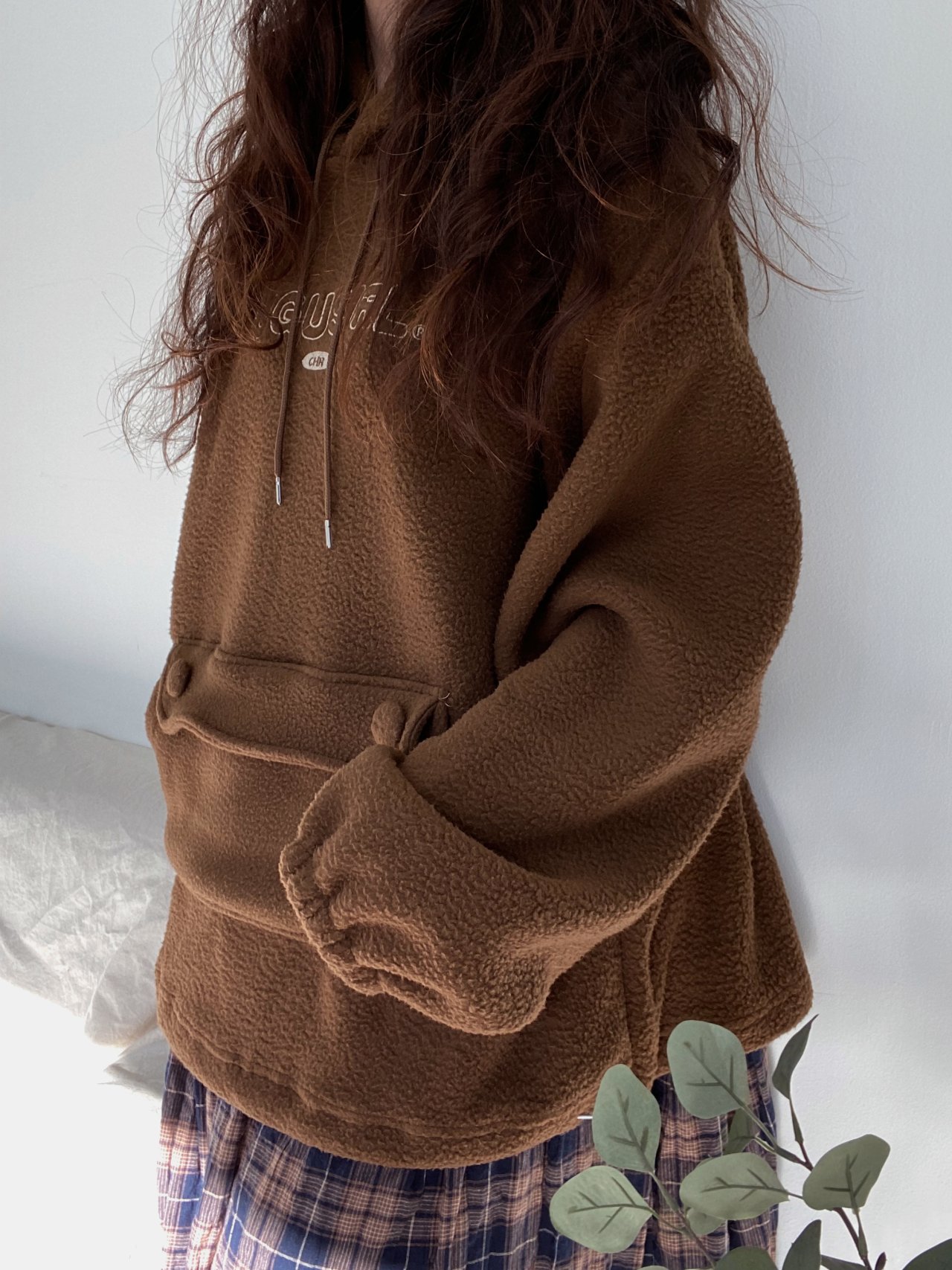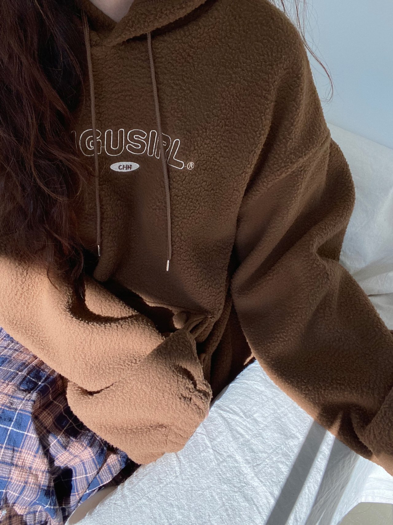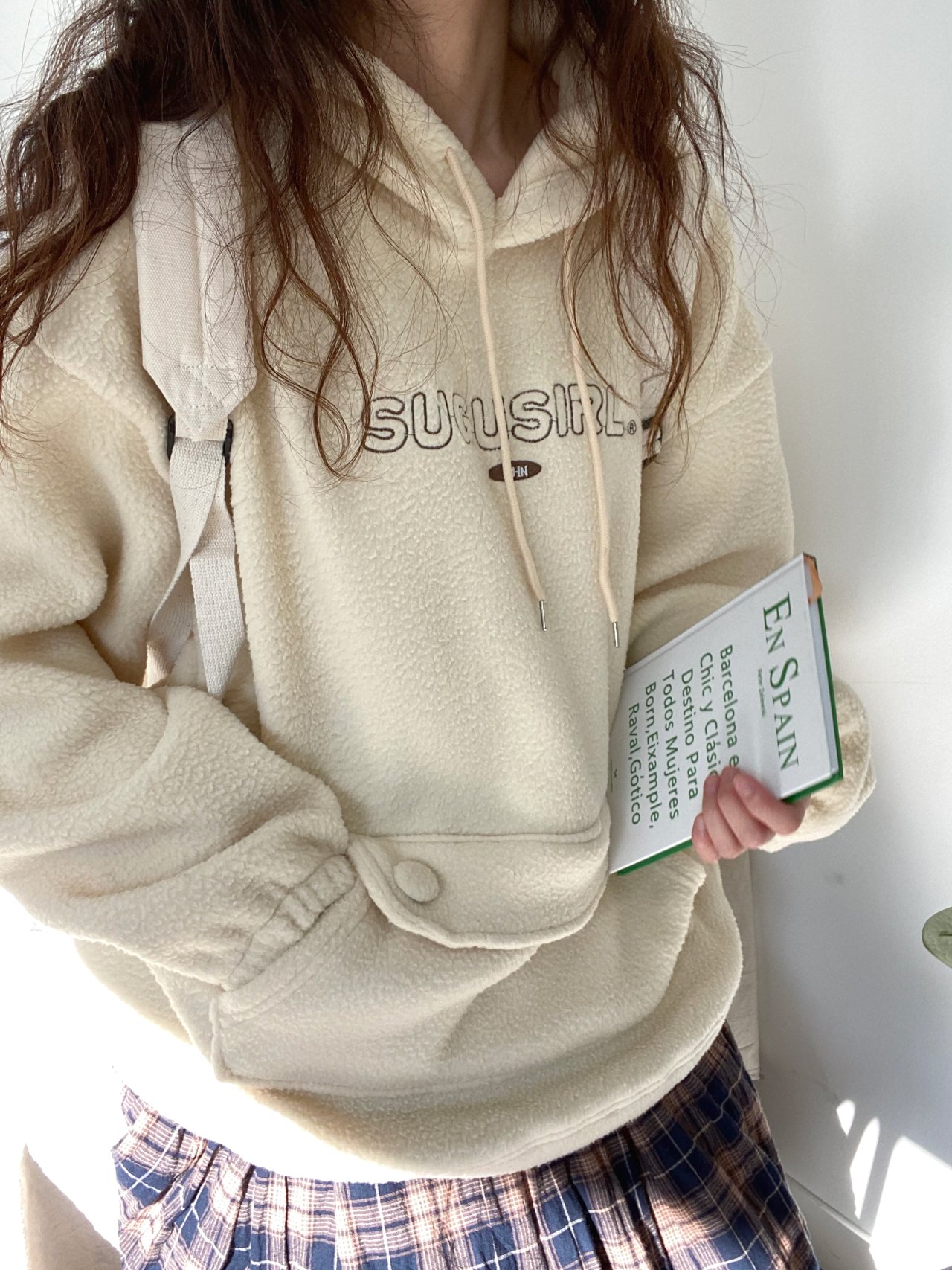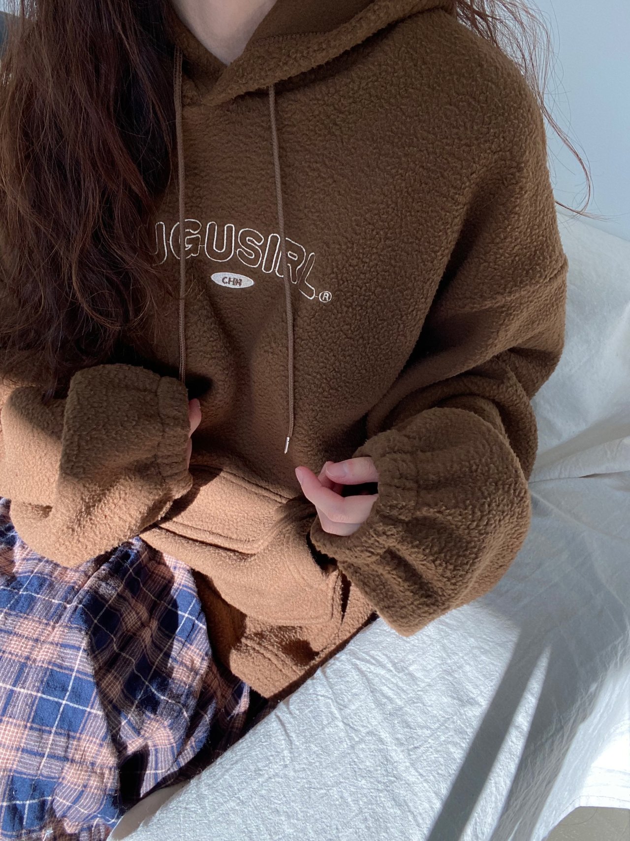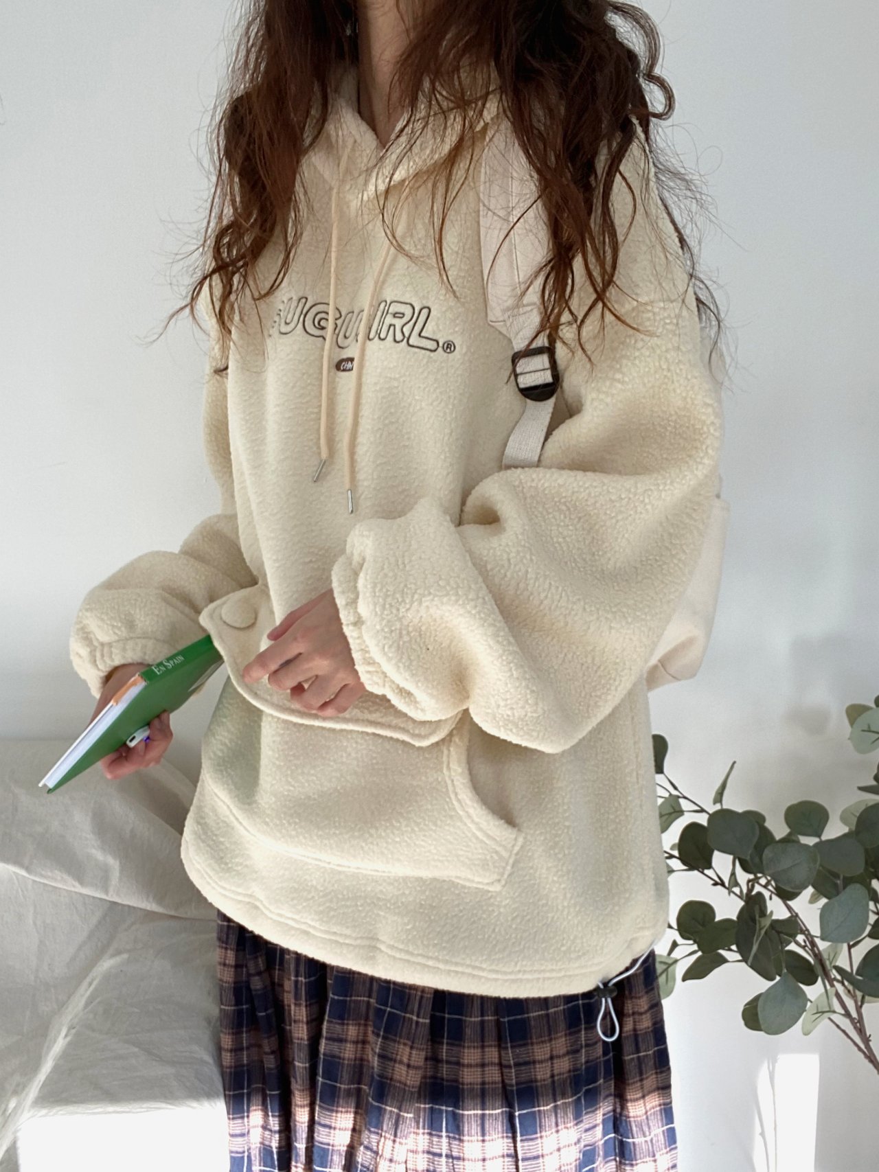 여자 DCB 포근 양털 후드 긴팔 티셔츠