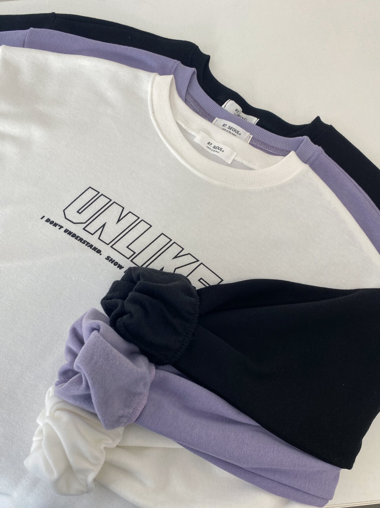 커플 SU 언라이크 기모 맨투맨 티셔츠