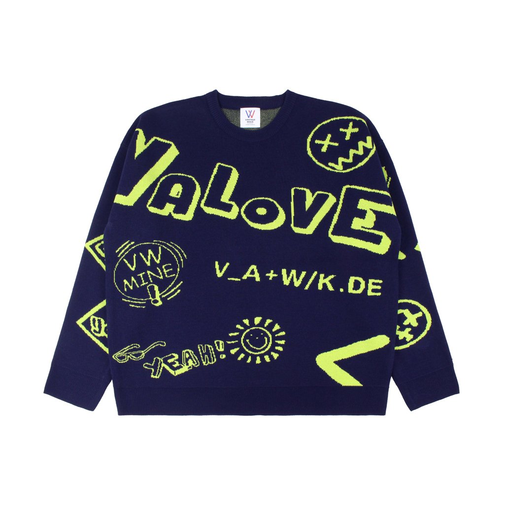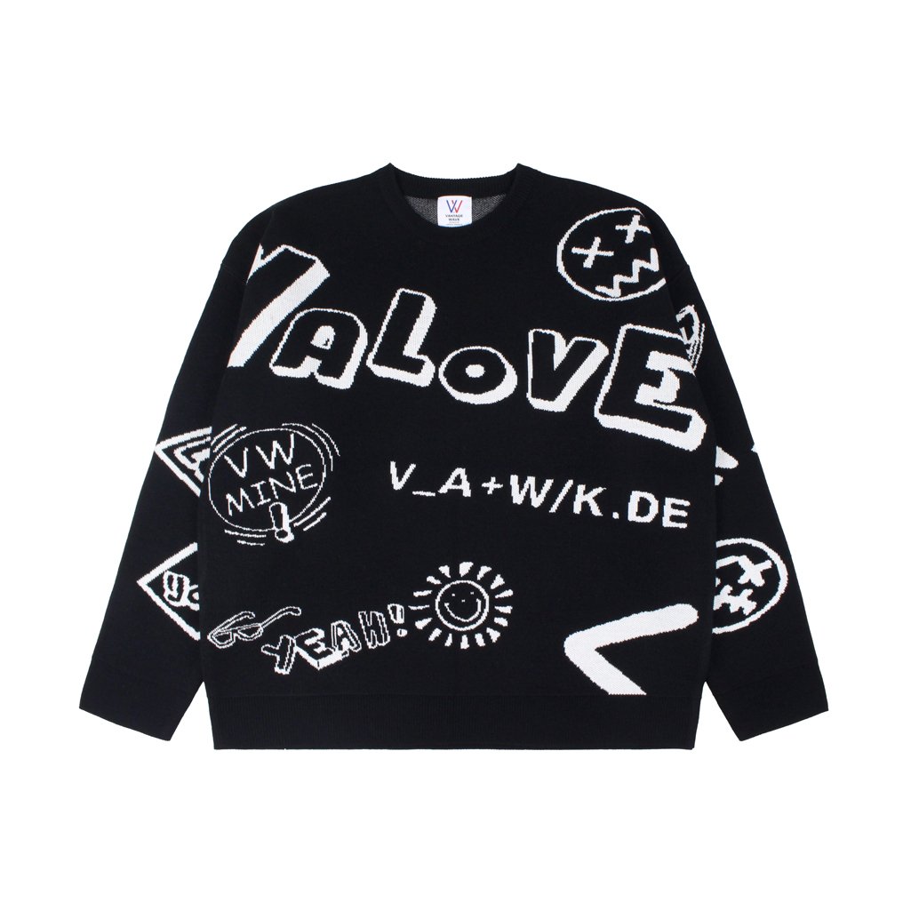 커플 VM 브이 러브 라운드 니트 스웨터 : 브이핏