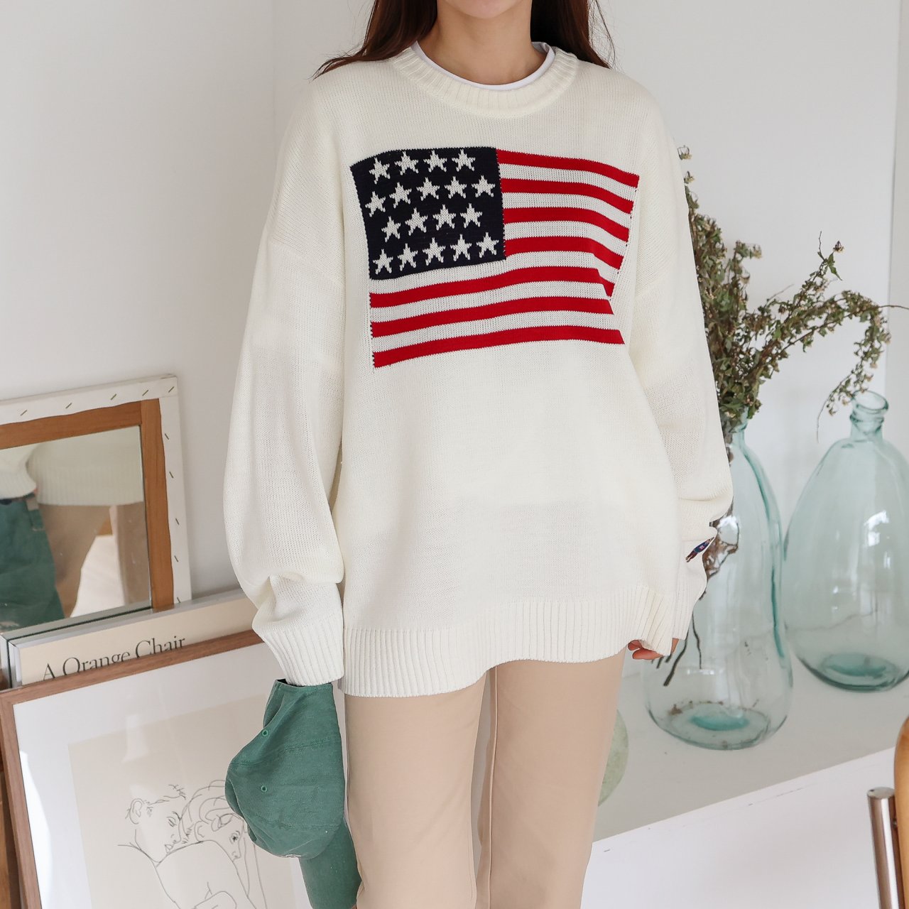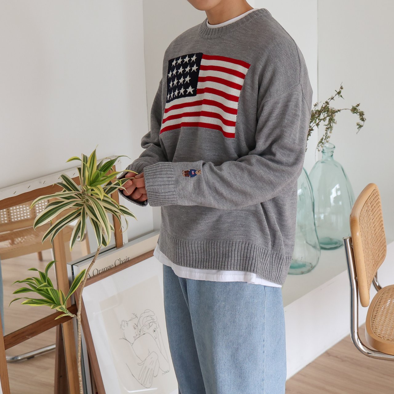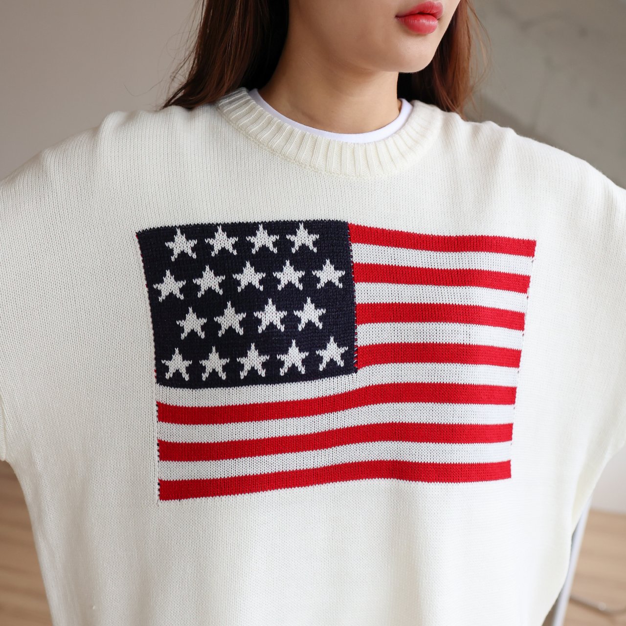 디투 성조기 라운드 니트 스웨터 : 브이핏