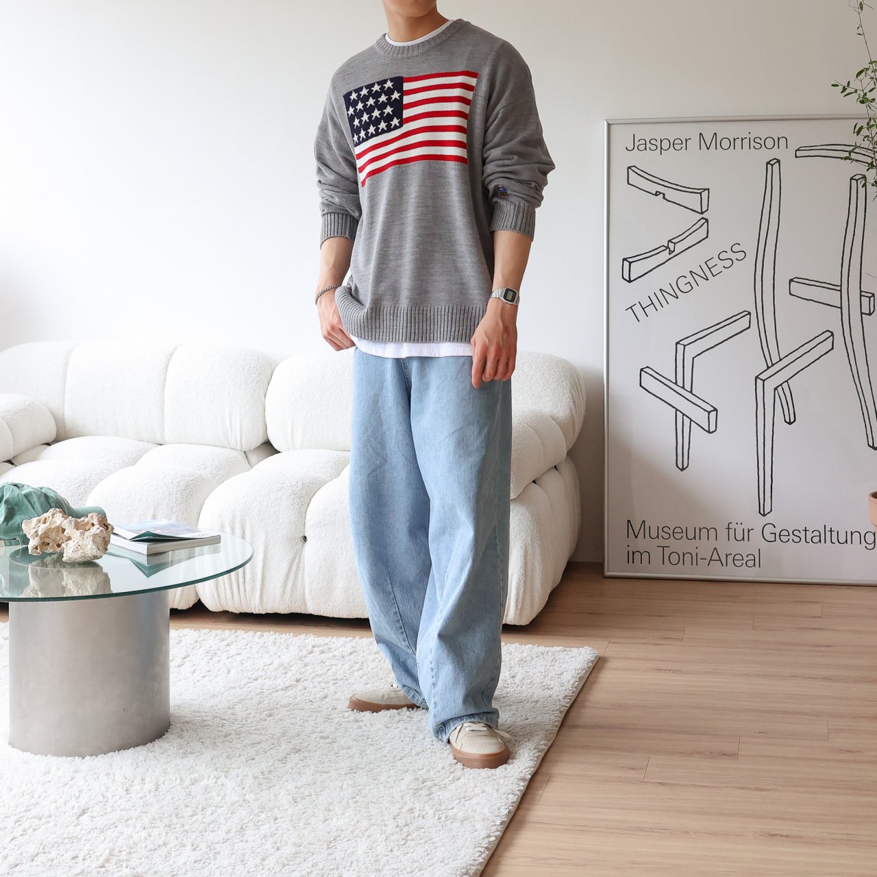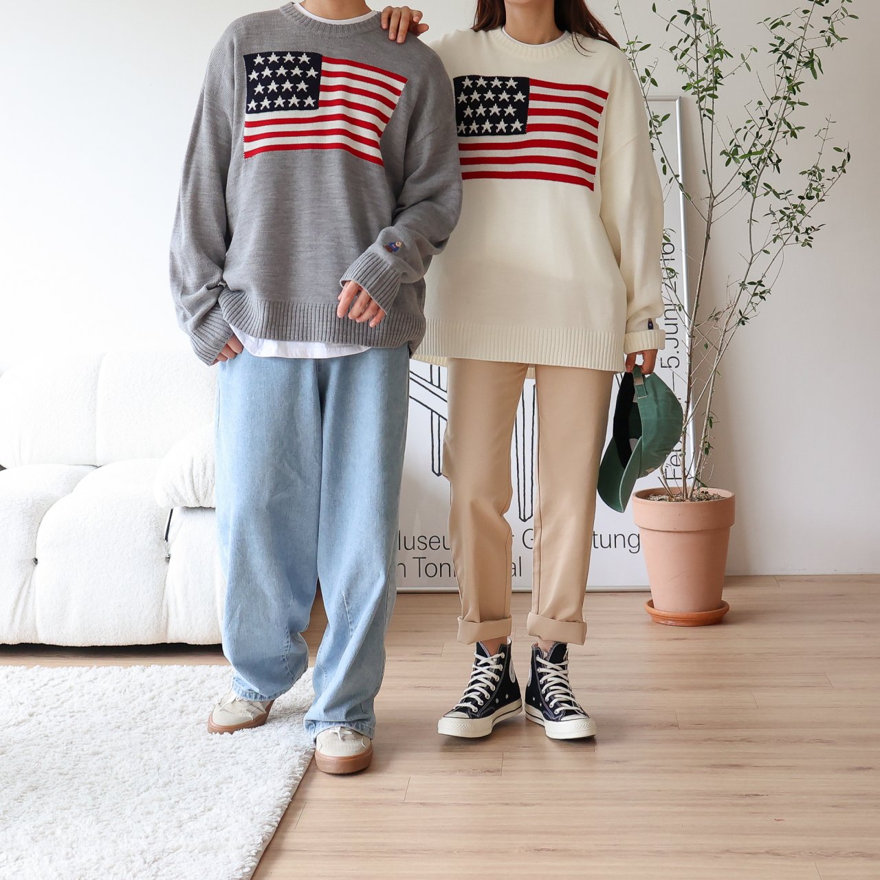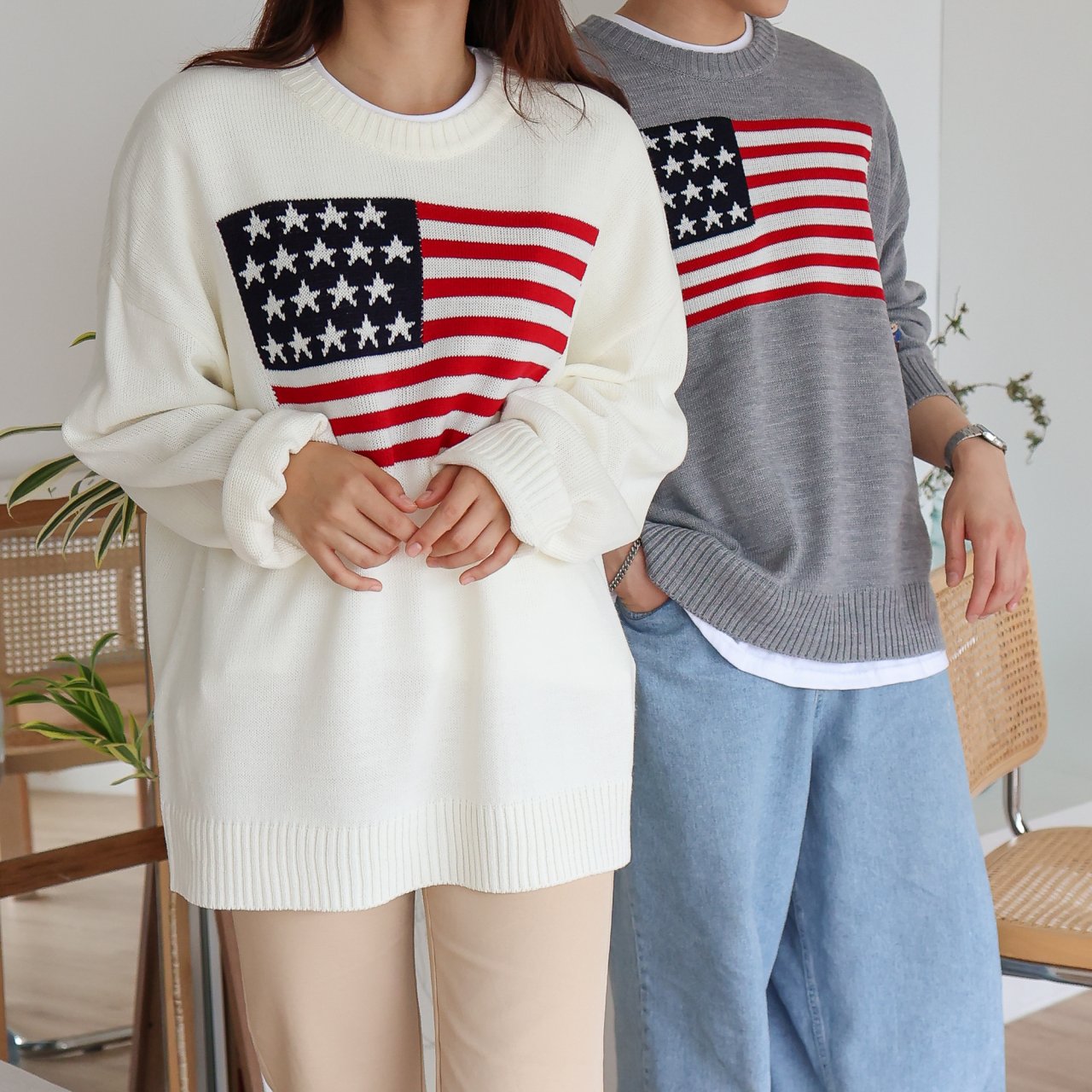 디투 성조기 라운드 니트 스웨터 : 브이핏