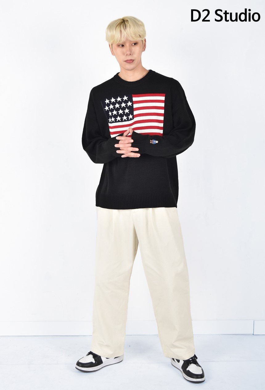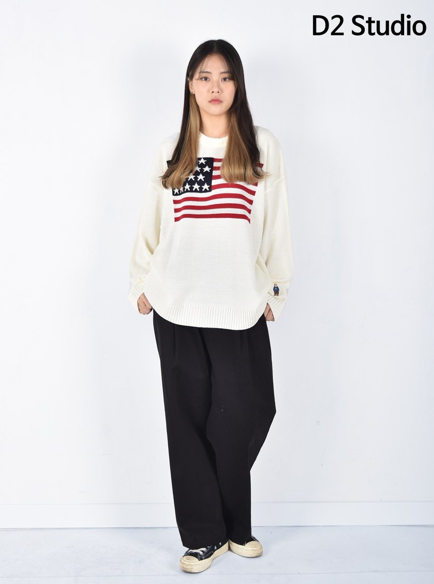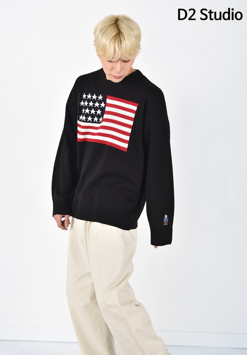 디투 성조기 라운드 니트 스웨터