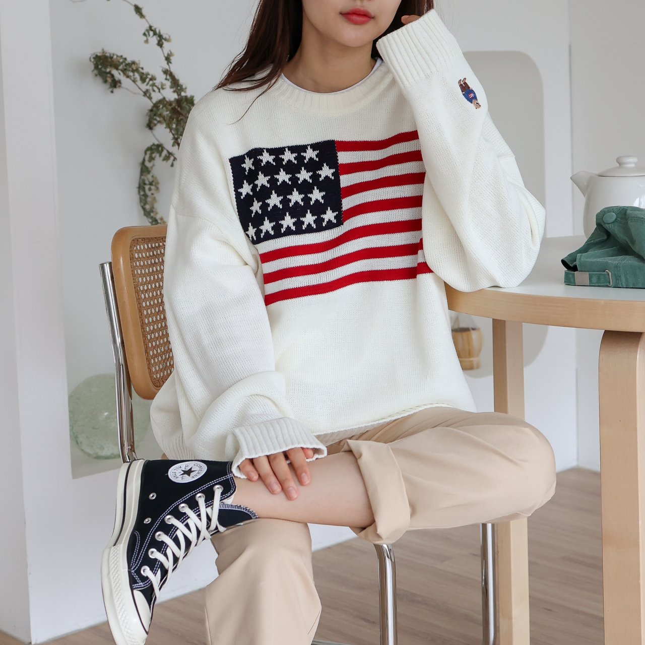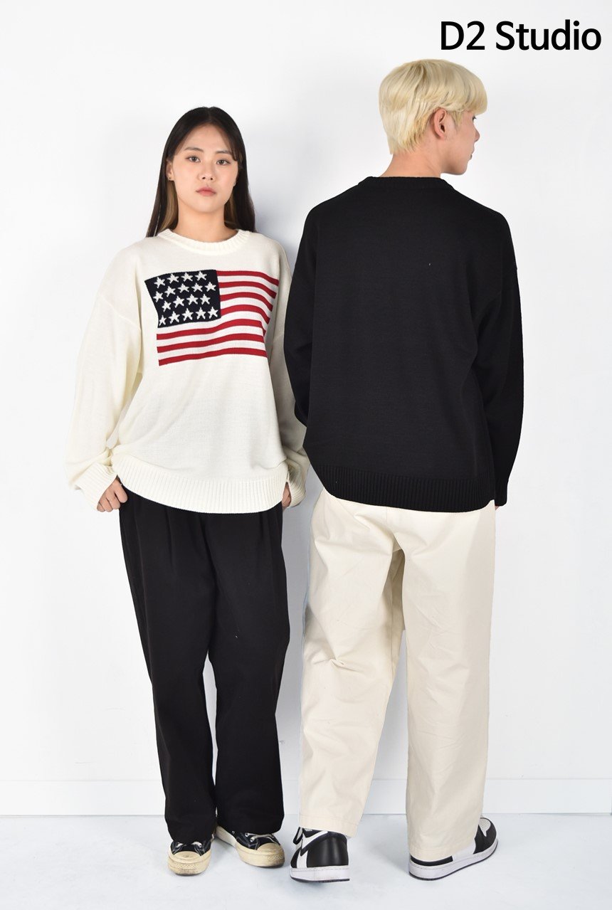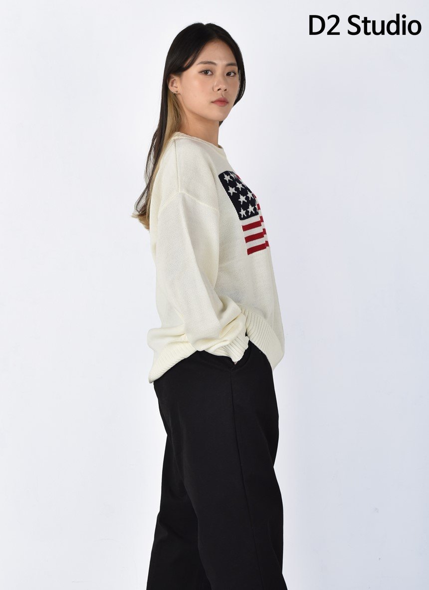 디투 성조기 라운드 니트 스웨터