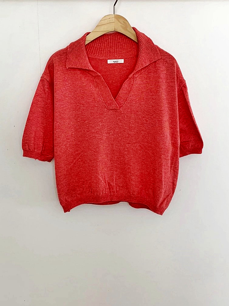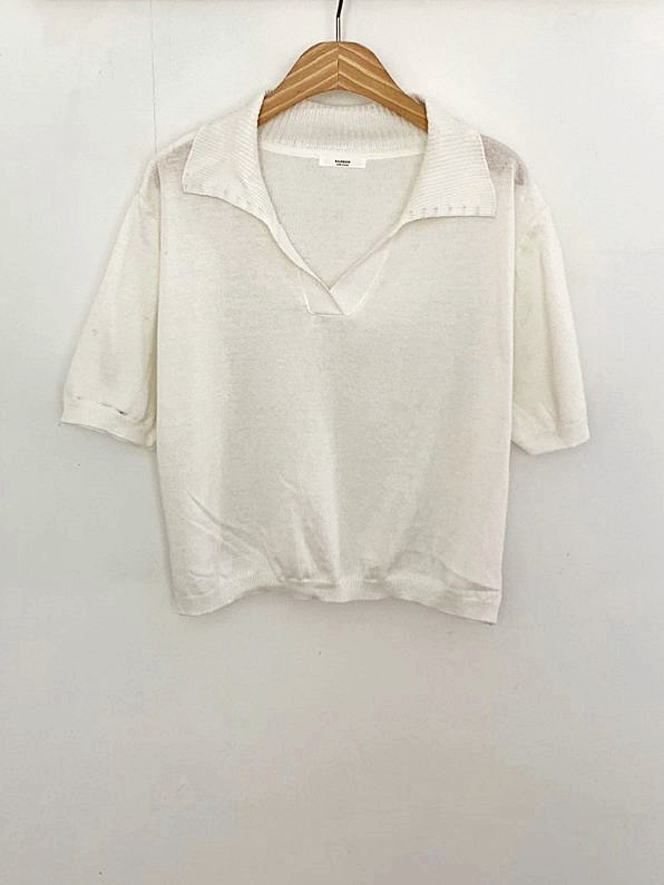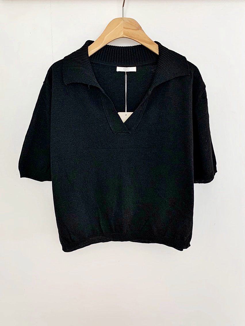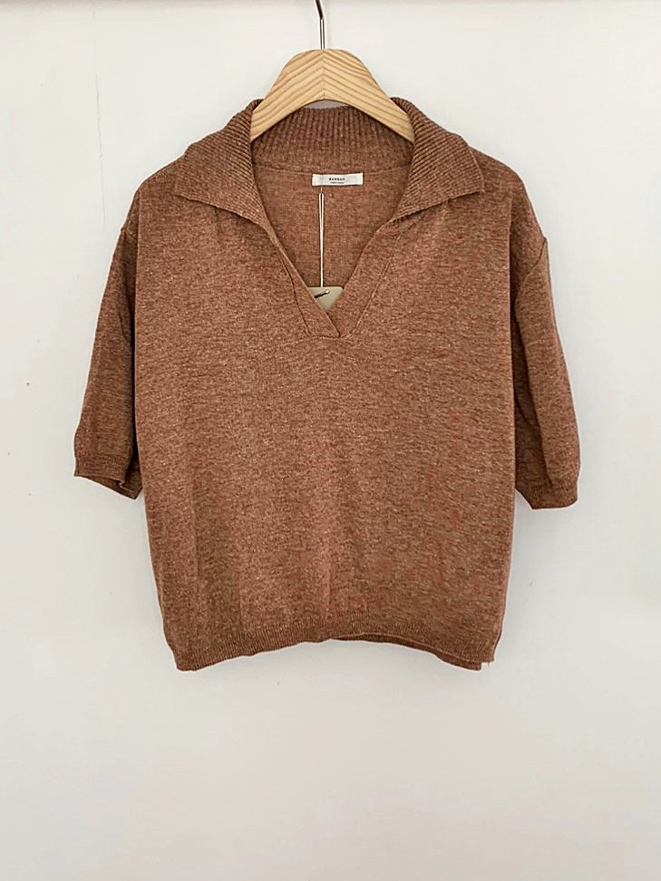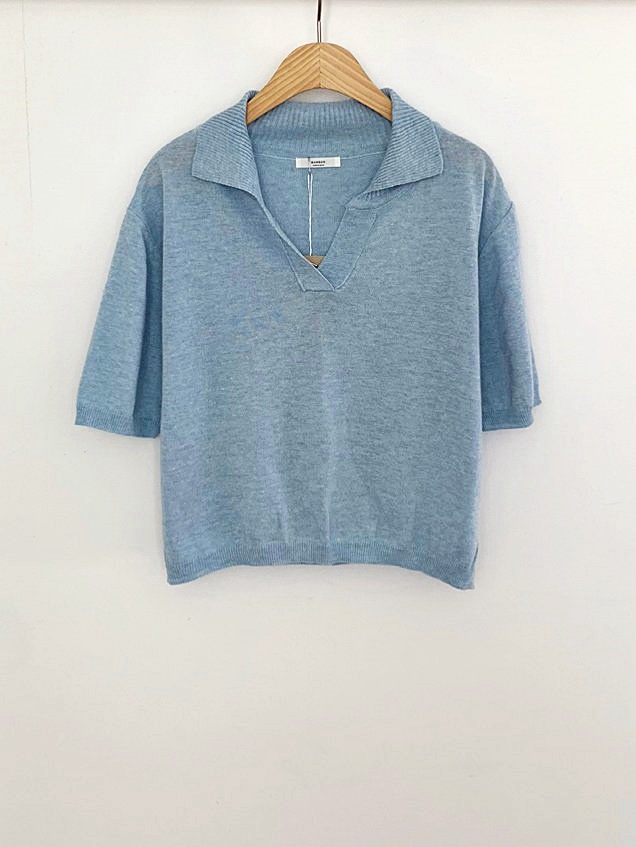 NPG 밤부 첼로 카라 반팔 니트 스웨터