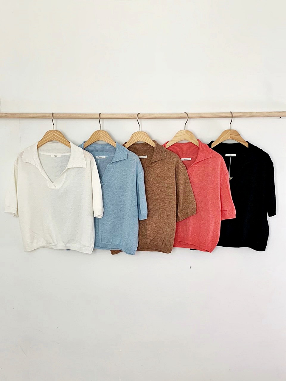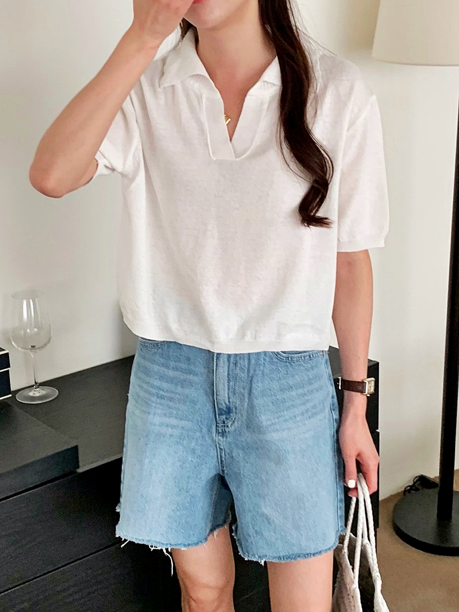 NPG 밤부 첼로 카라 반팔 니트 스웨터 : 브이핏