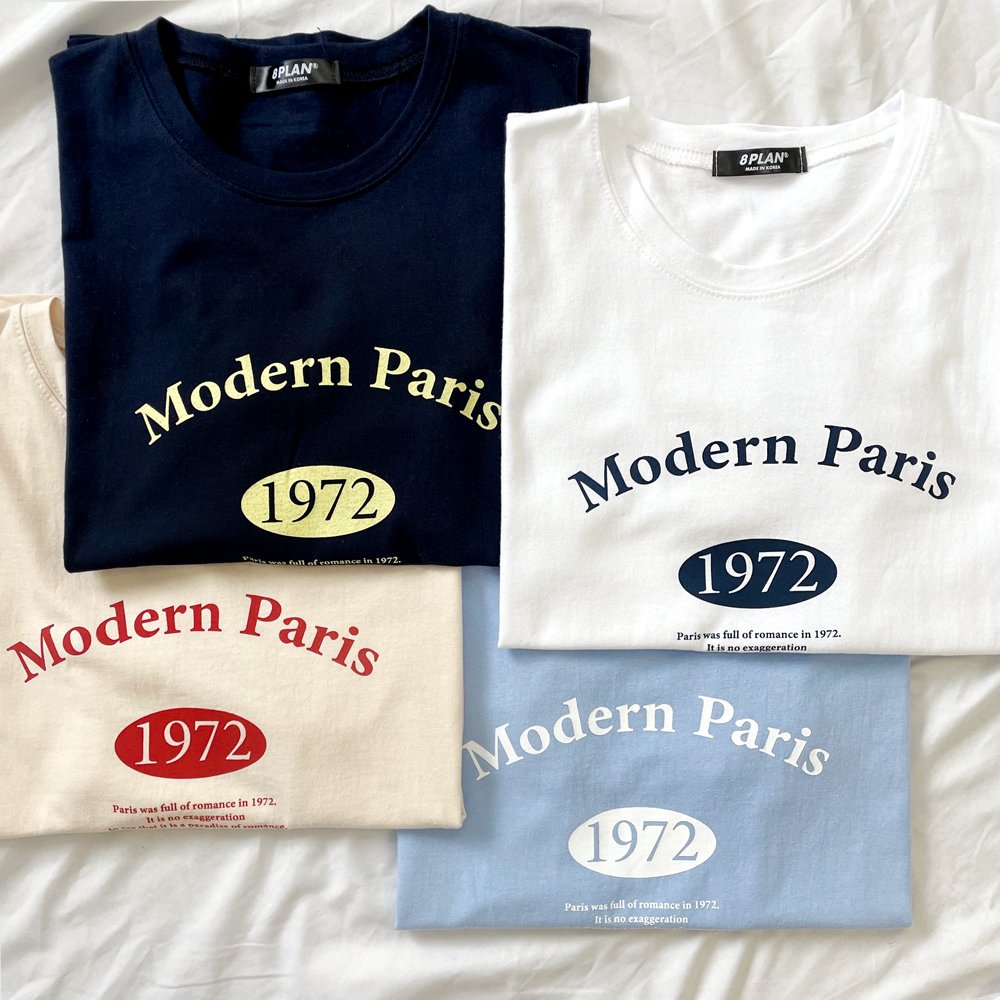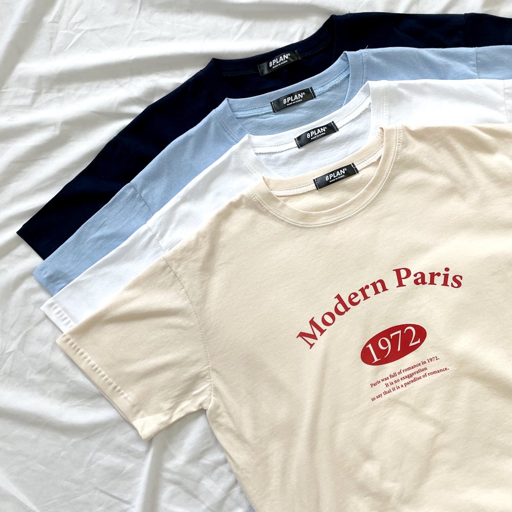 8P 모던 파리 반팔 티셔츠 : 브이핏